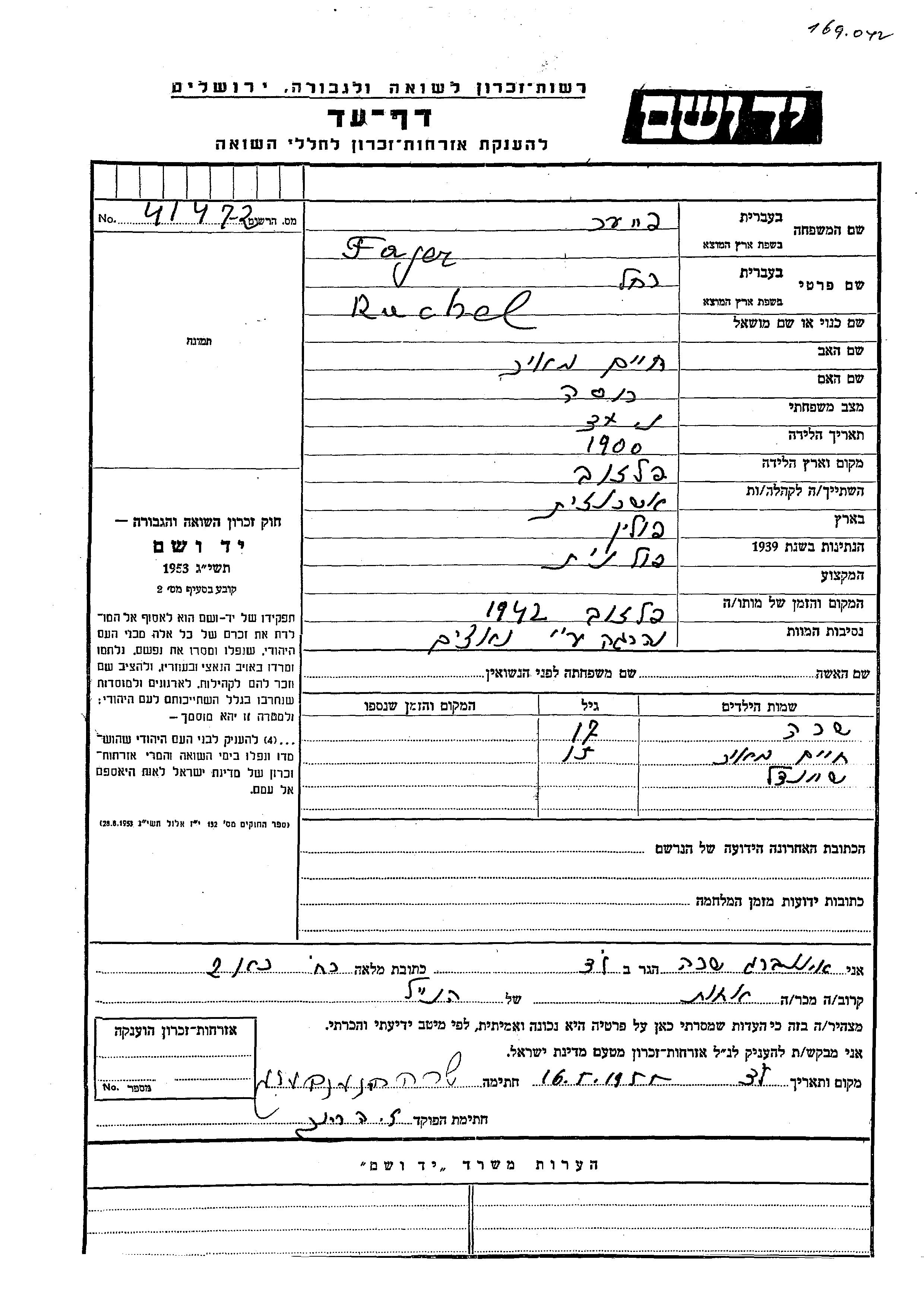 Яд Вашем - Листы свидетельских показаний Мемориального фонда