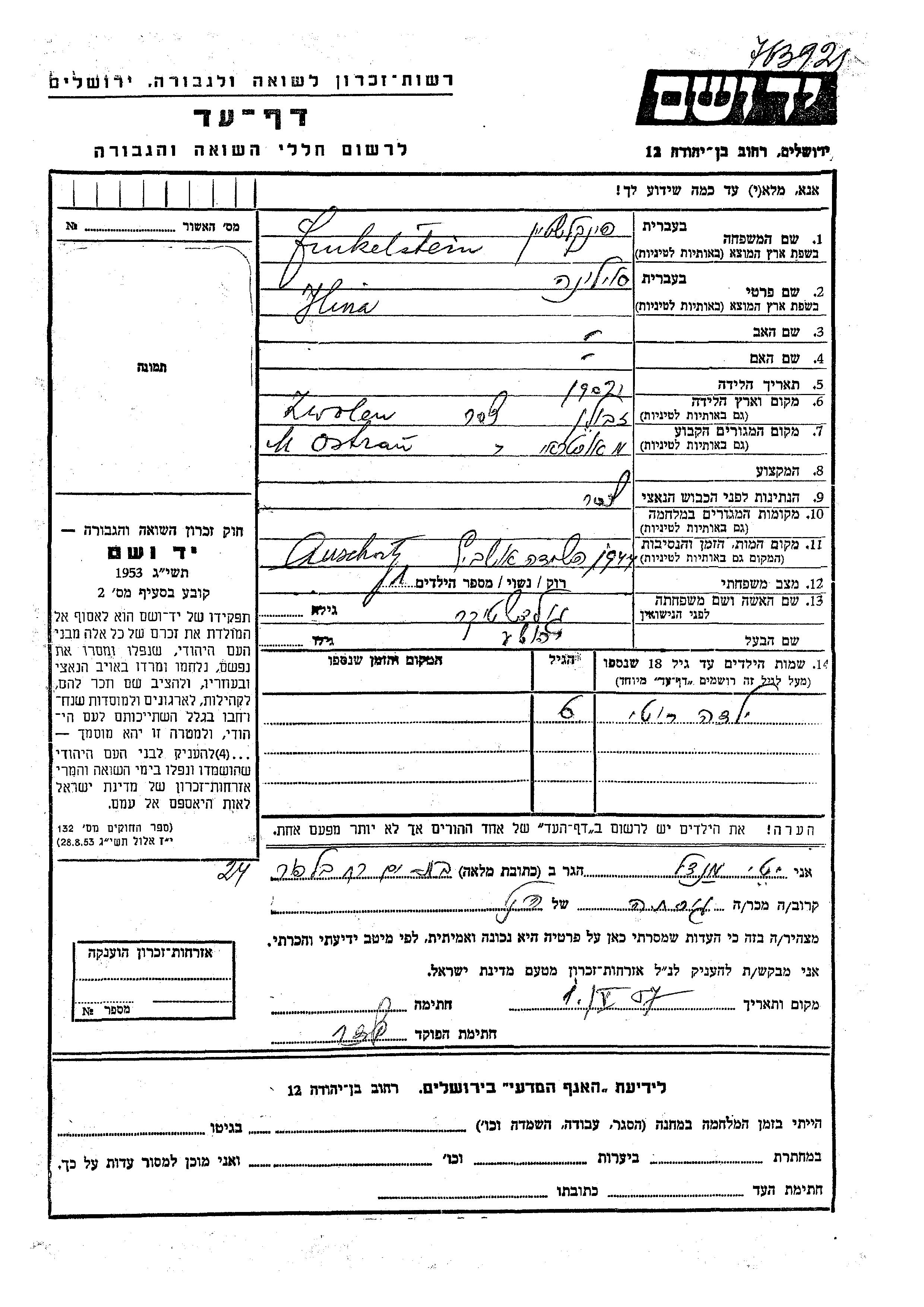 Яд Вашем - Листы свидетельских показаний Мемориального фонда