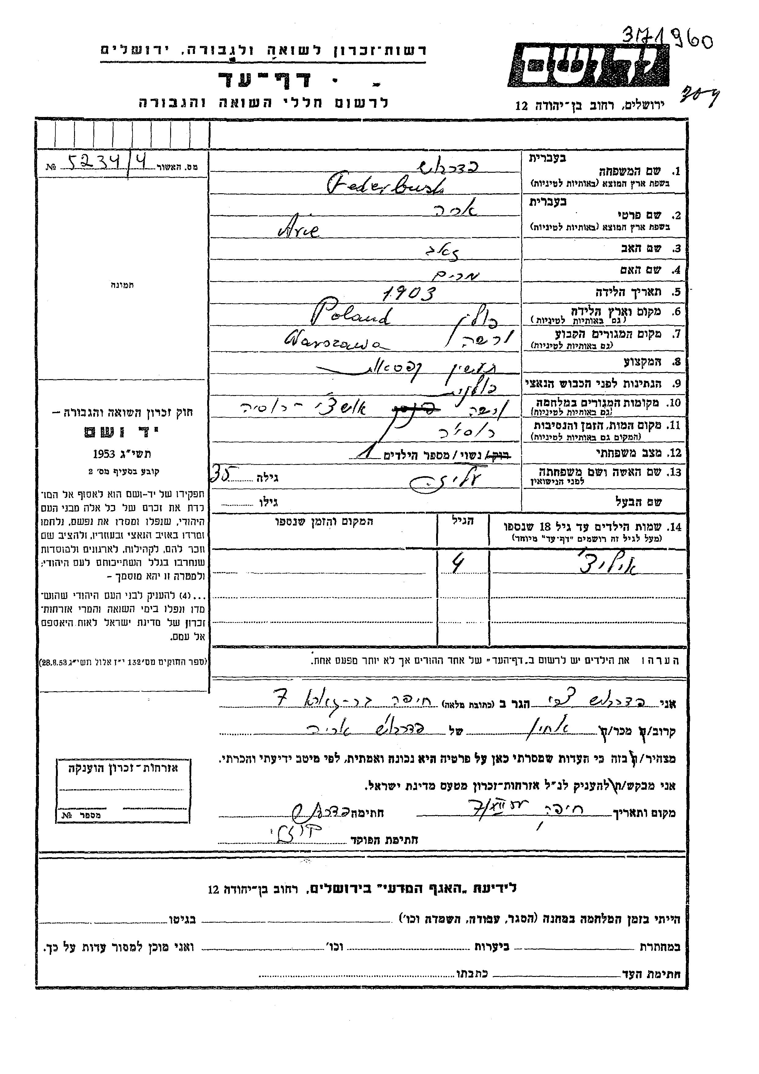 Ильич Федербуш Арье Ализа. Ребенок. Место жительства до войны: Варшава, Польша. Место во время войны: Варшава, Польша.