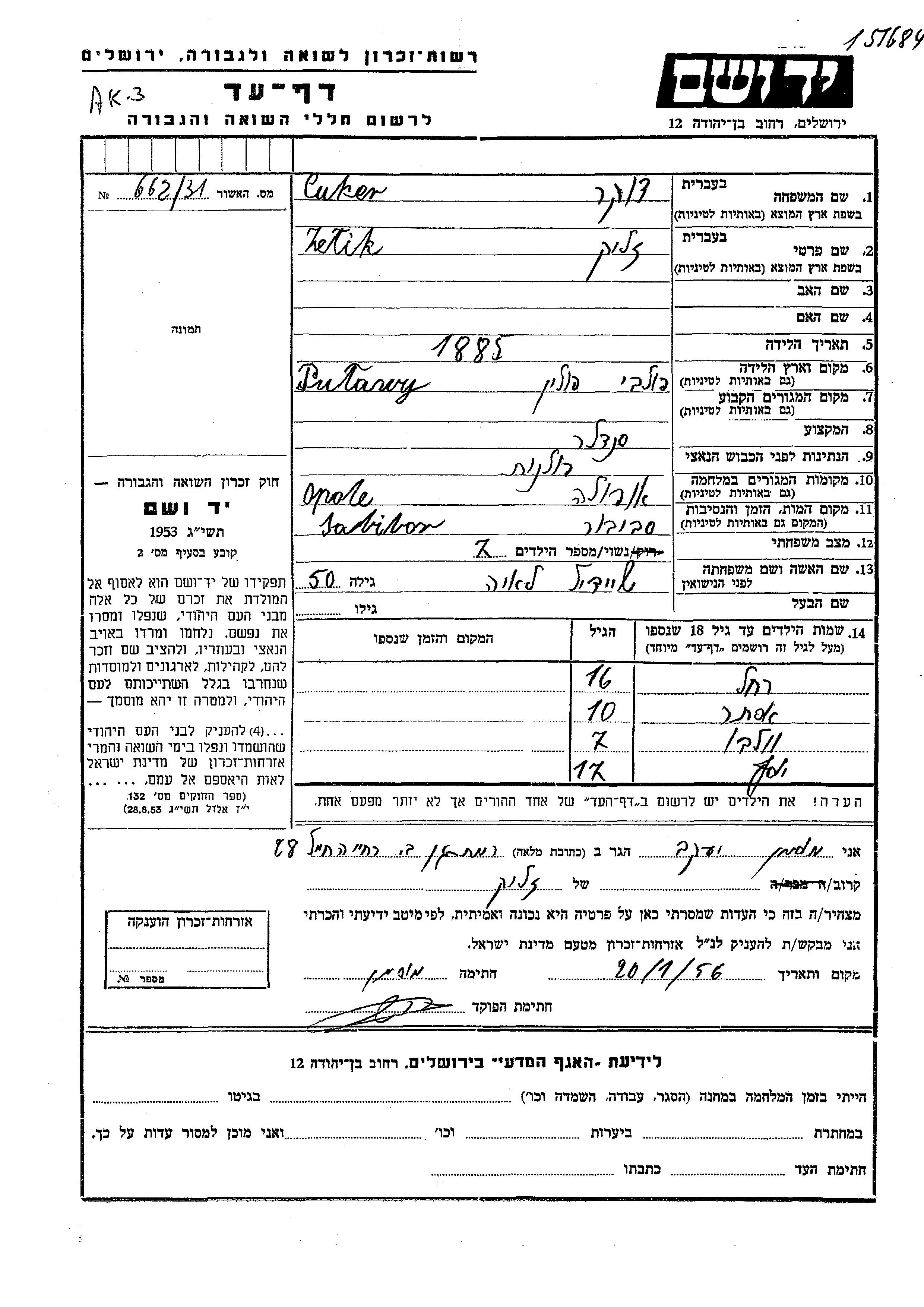 Яд Вашем - Листы свидетельских показаний Мемориального фонда