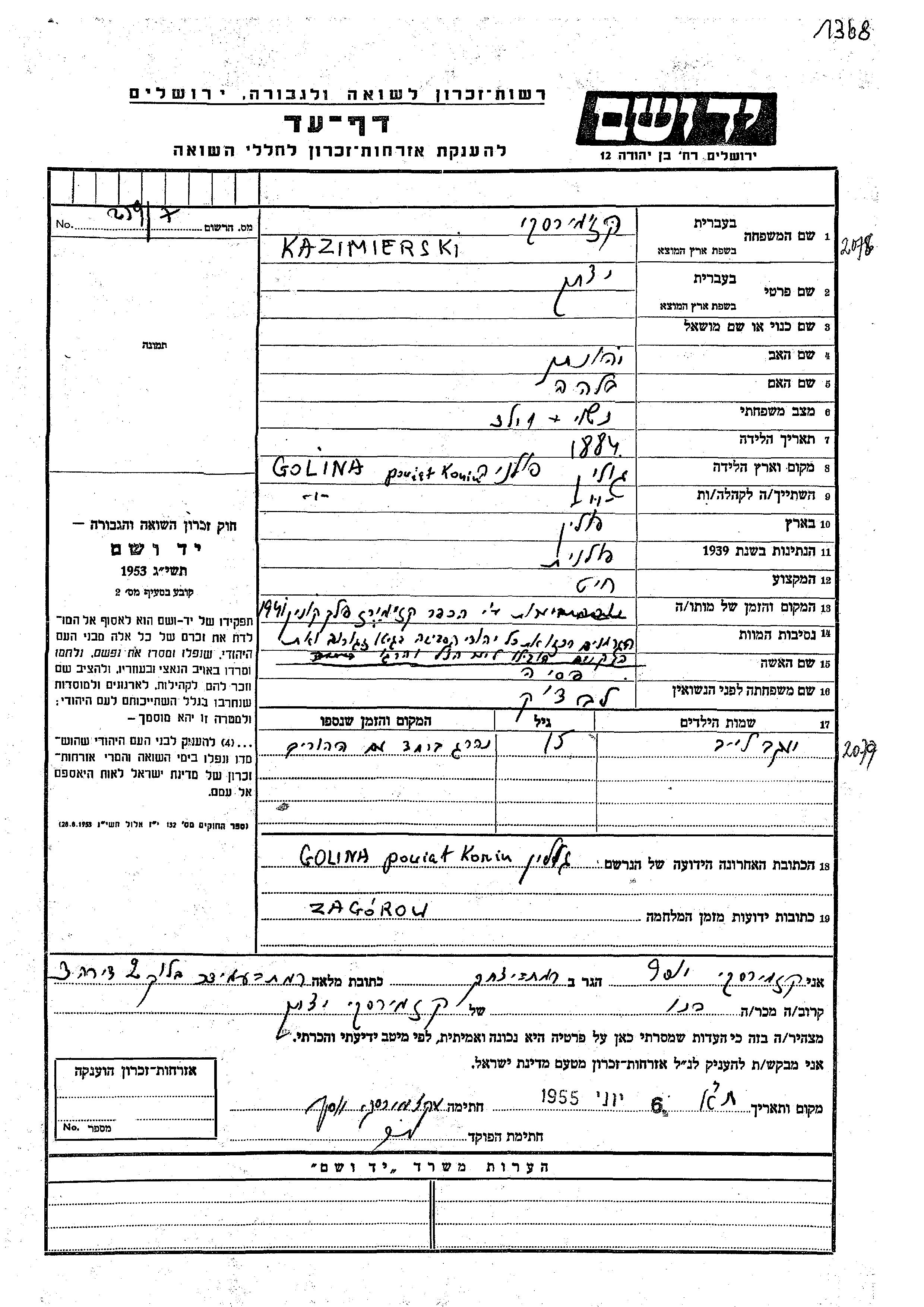 Казимерски Яков Лейб Голина, Польша Лист свидетельских показаний