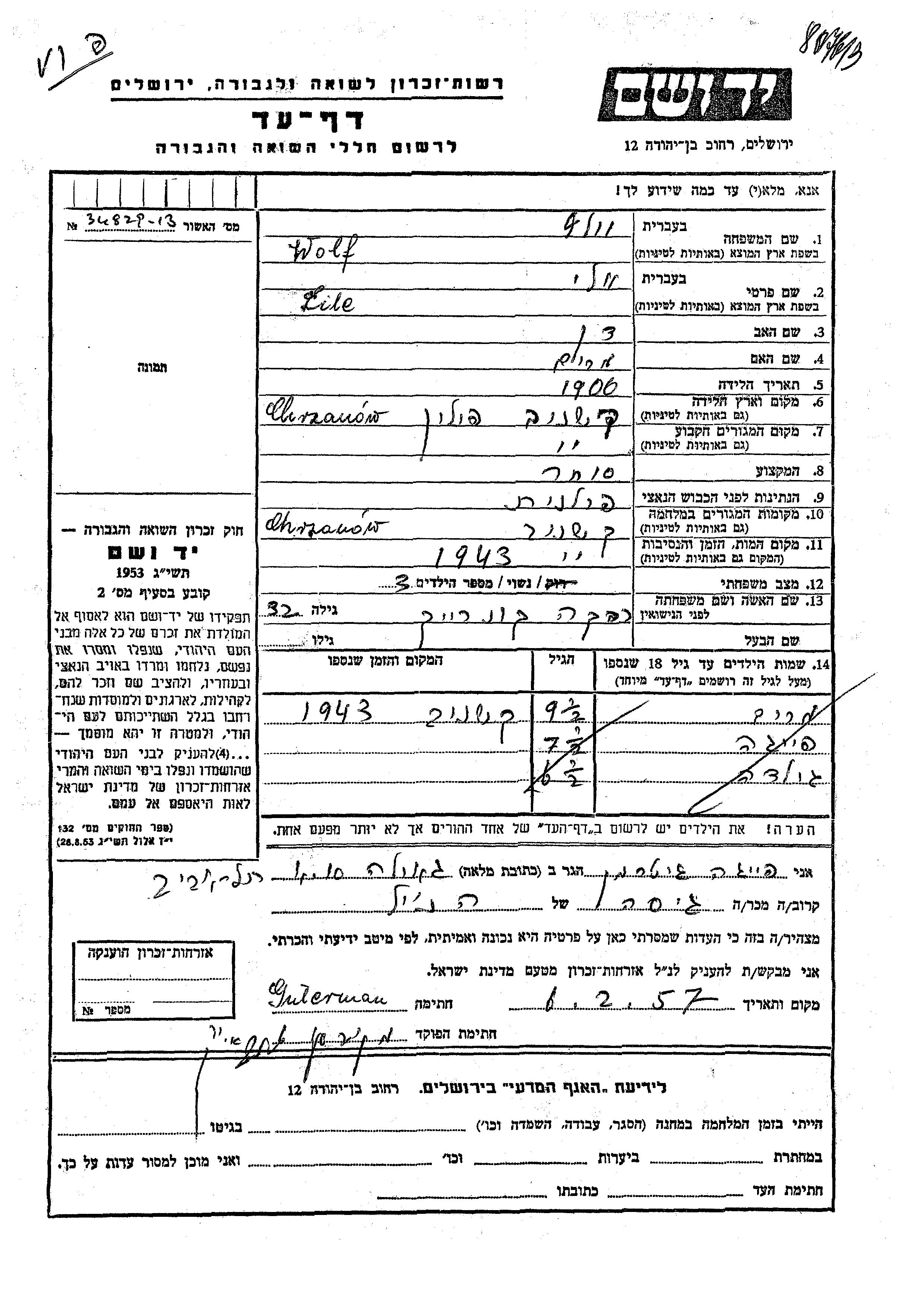 Яд Вашем - Листы свидетельских показаний Мемориального фонда