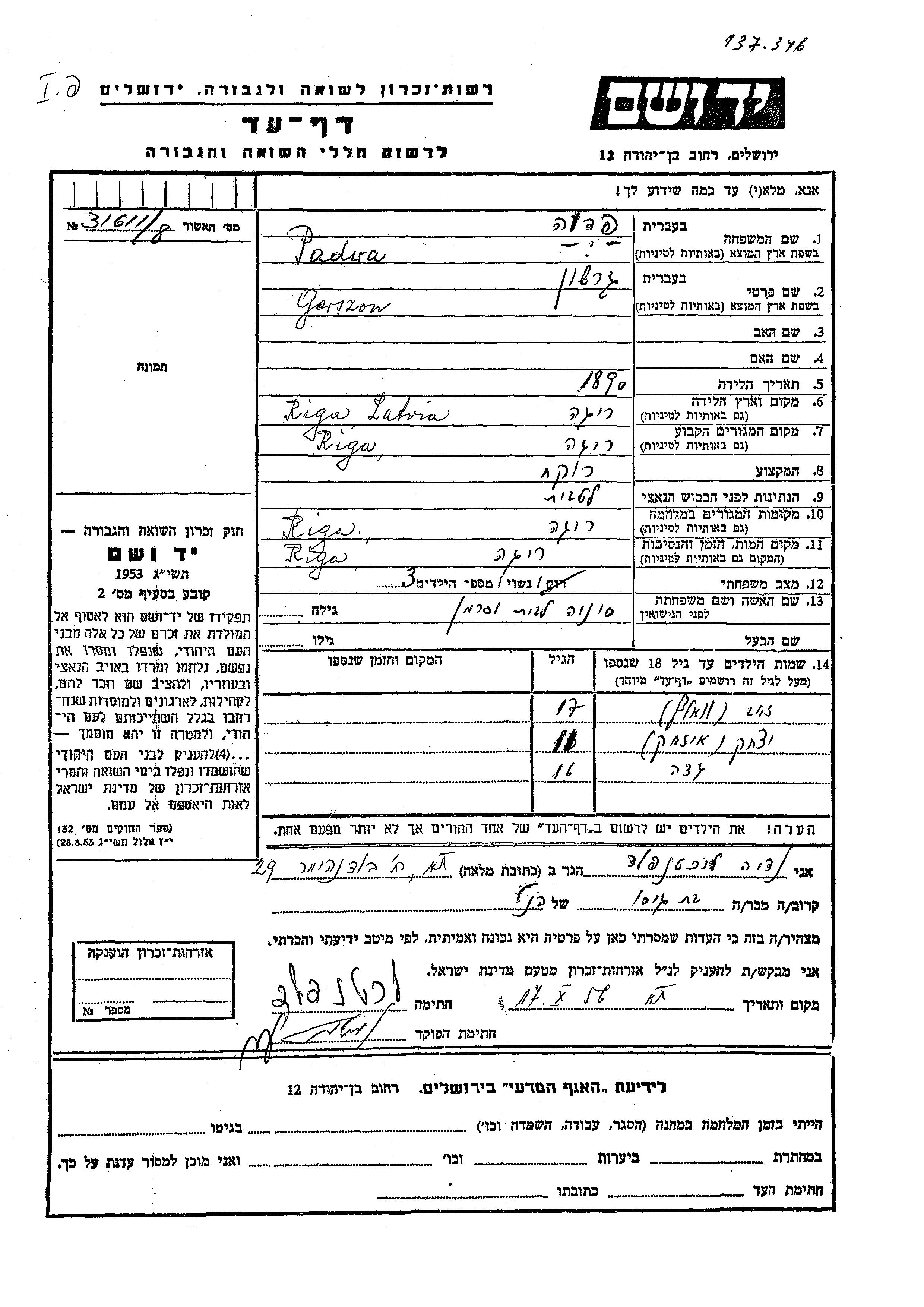 Падва Ицхак Рига, Латвия Лист свидетельских показаний