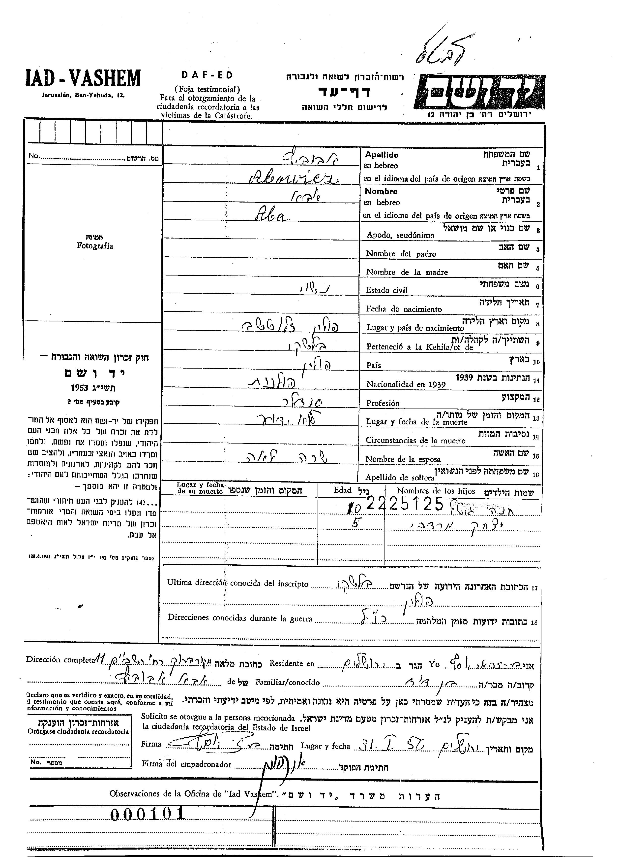 Абович Хана Гитель Бельск, Польша Лист свидетельских показаний