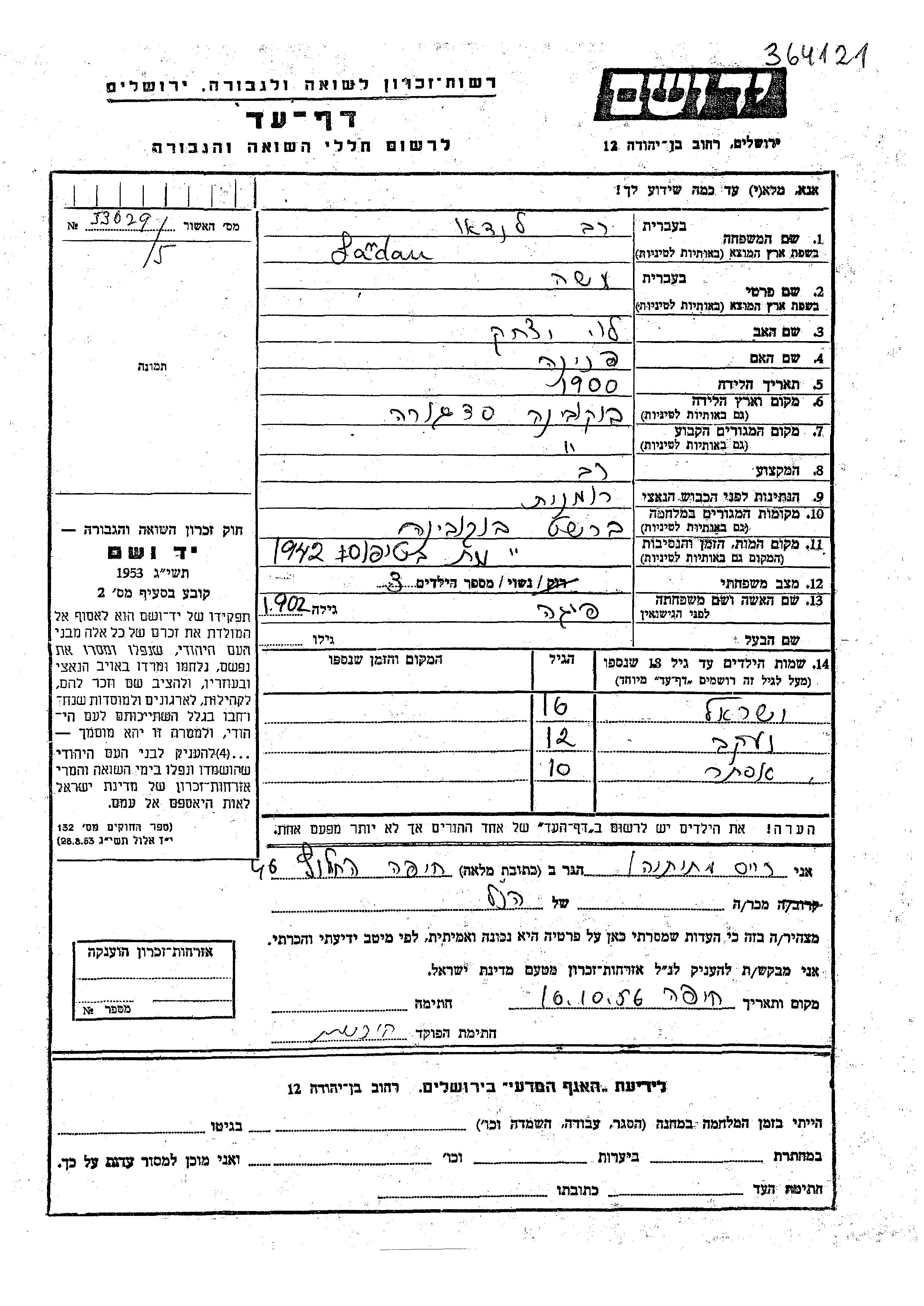 Яд Вашем - Листы свидетельских показаний Мемориального фонда