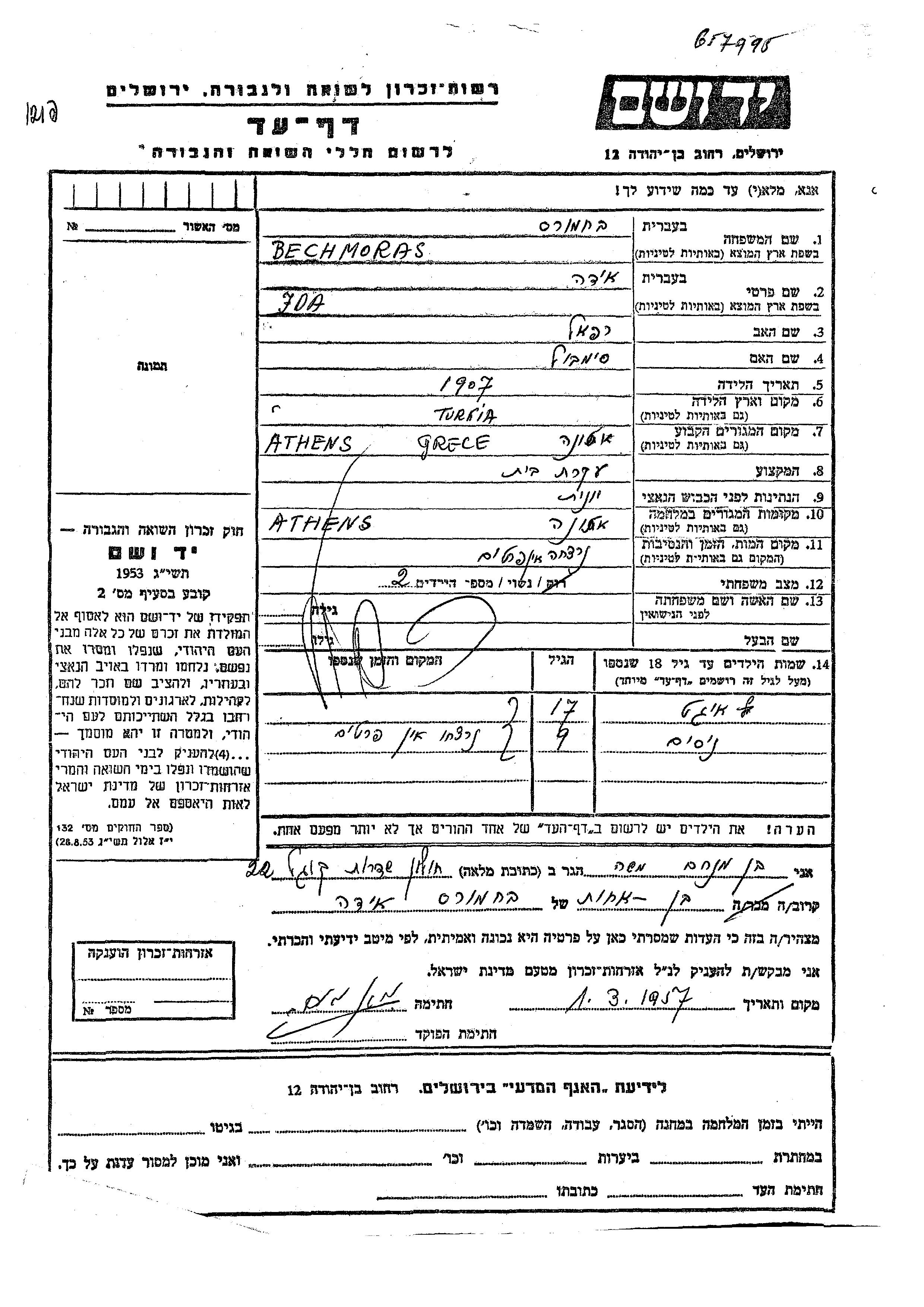 Игет Бехморас Эда Ида. Ребенок. Место жительства до войны: Афины, Греция. Место во время войны: Афины, Греция.