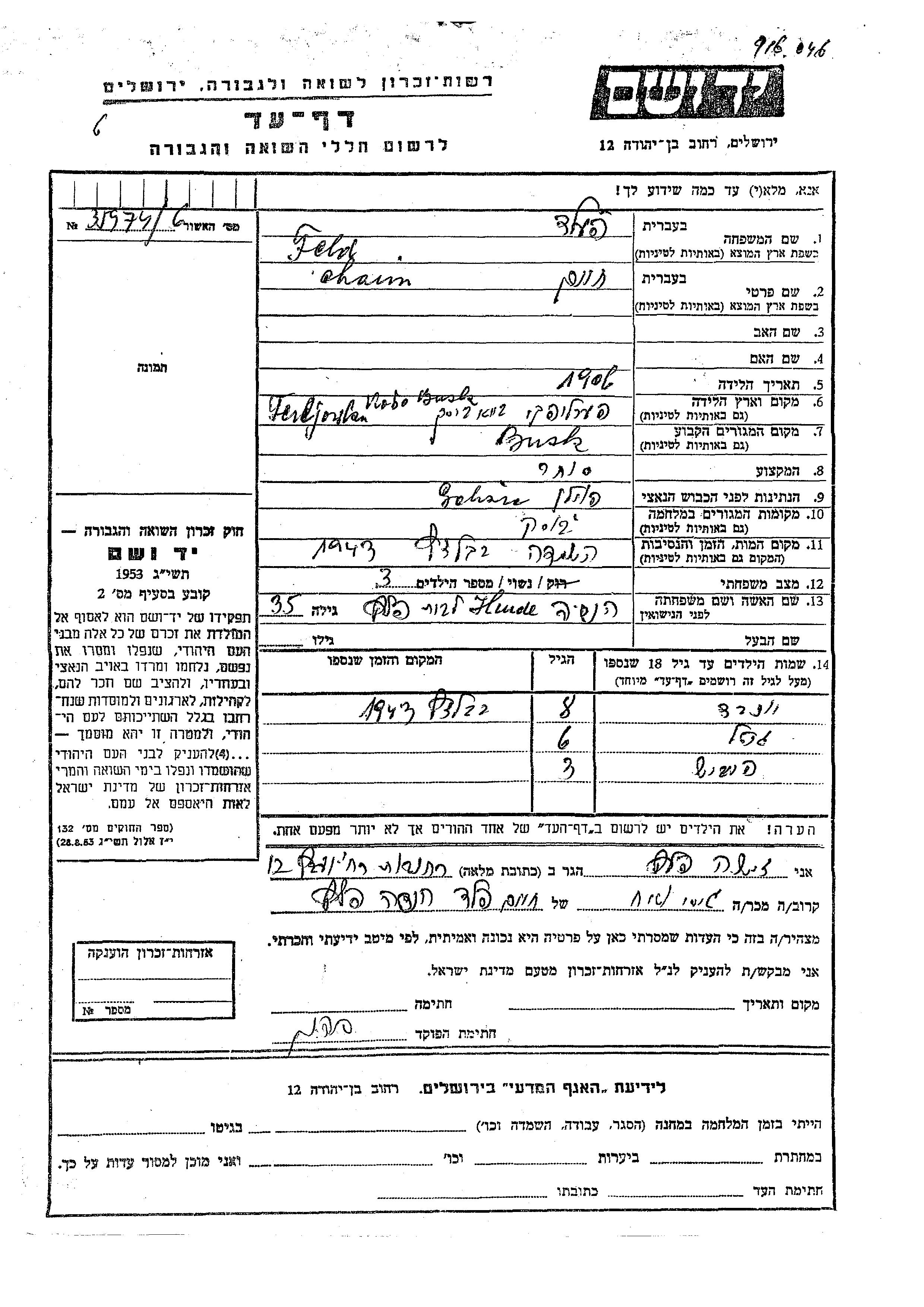 Яд Вашем - Листы свидетельских показаний Мемориального фонда