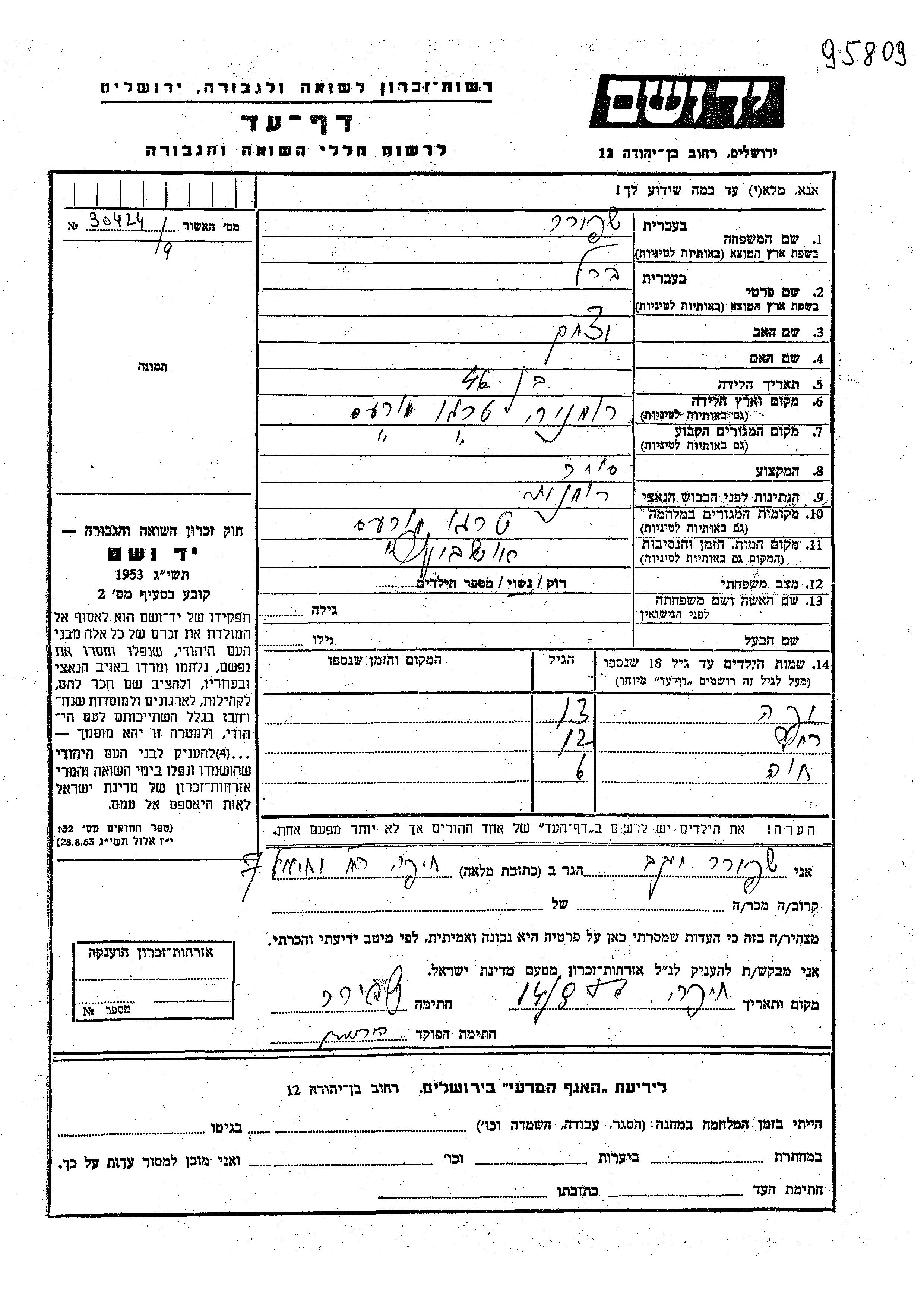 Шпирер Яфа место не указано, Лист свидетельских показаний
