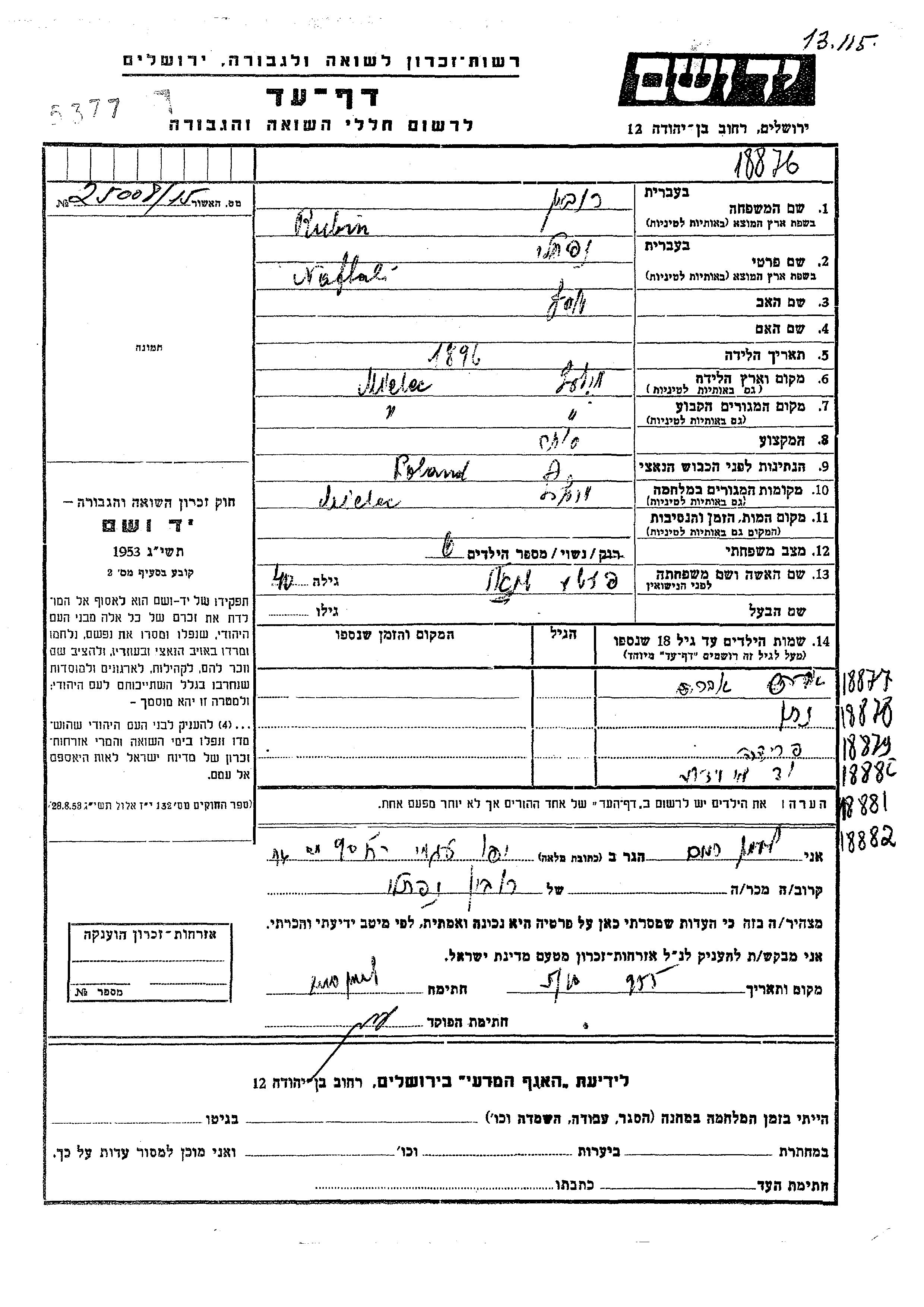 Яд Вашем - Листы свидетельских показаний Мемориального фонда