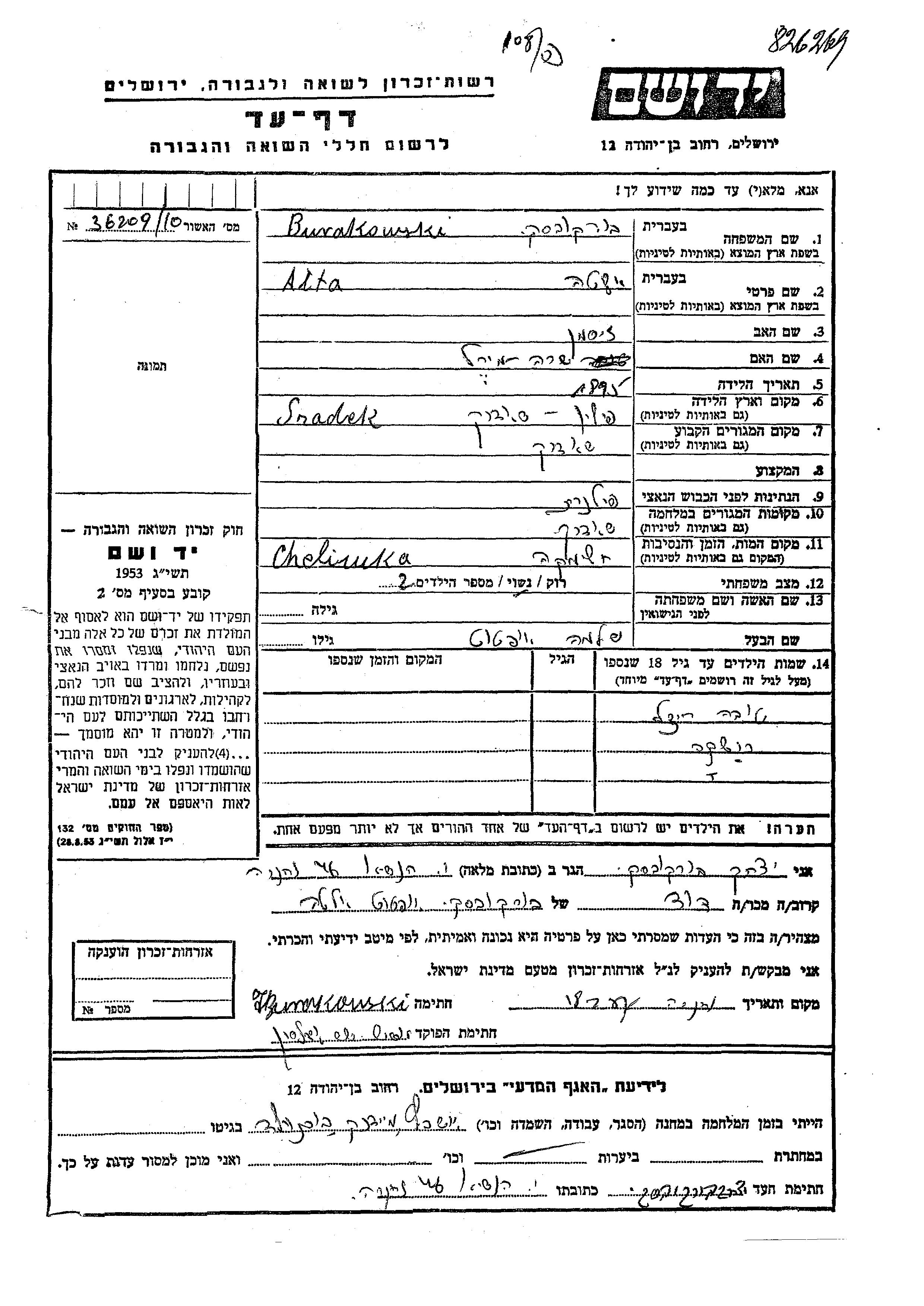 Бураковски Рушка Шадек, Польша Лист свидетельских показаний