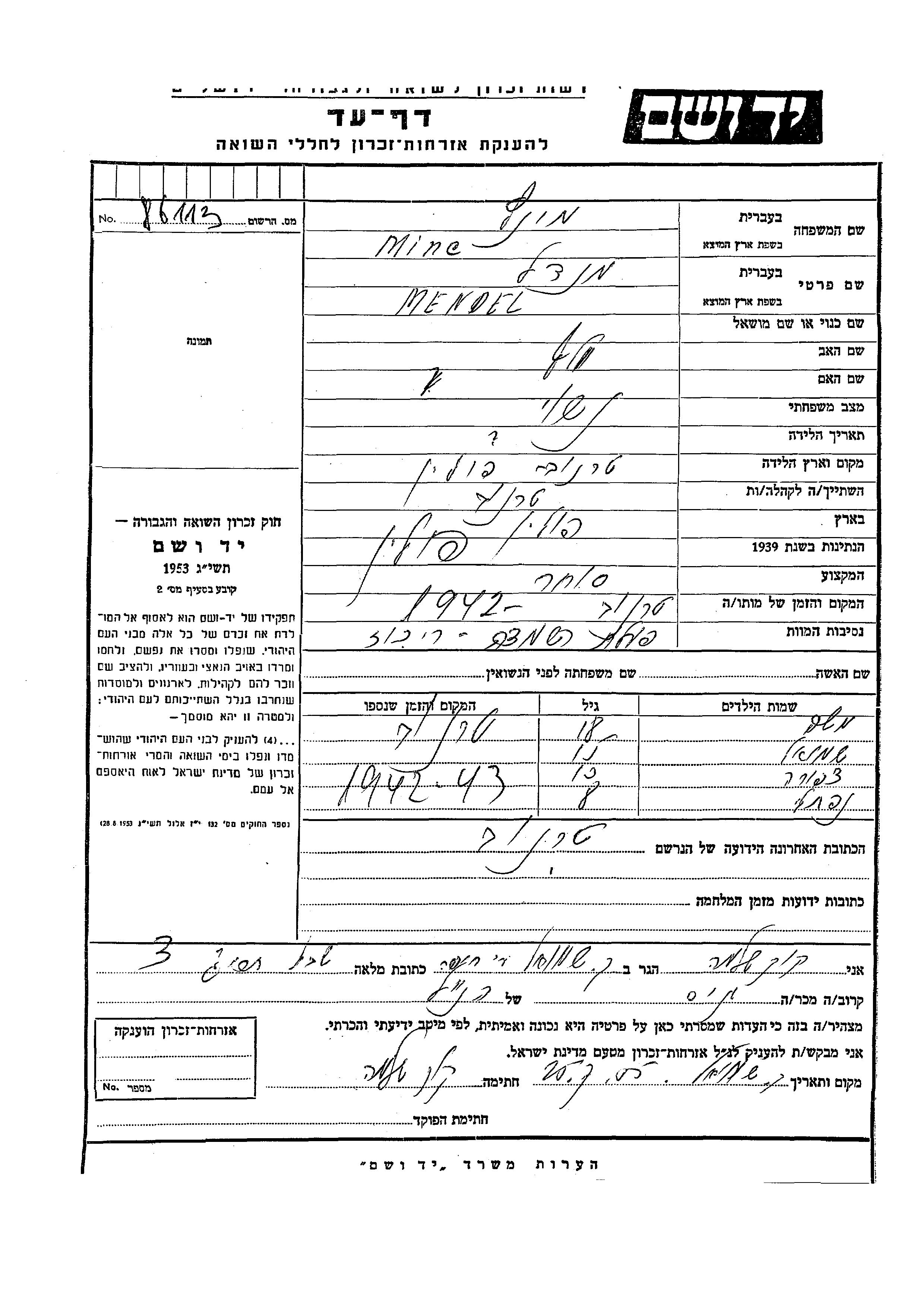 Яд Вашем - Листы свидетельских показаний Мемориального фонда