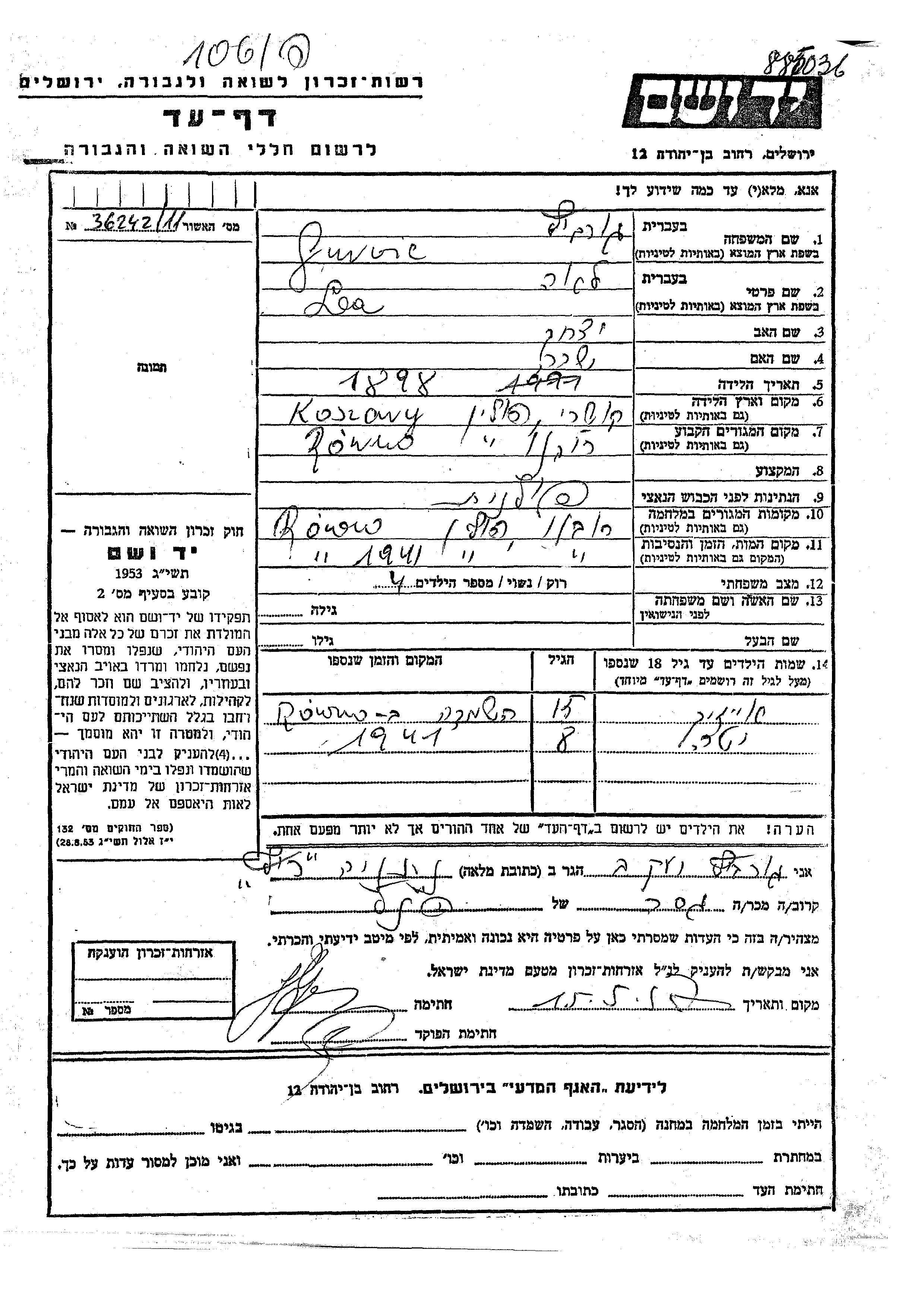Яд Вашем - Листы свидетельских показаний Мемориального фонда