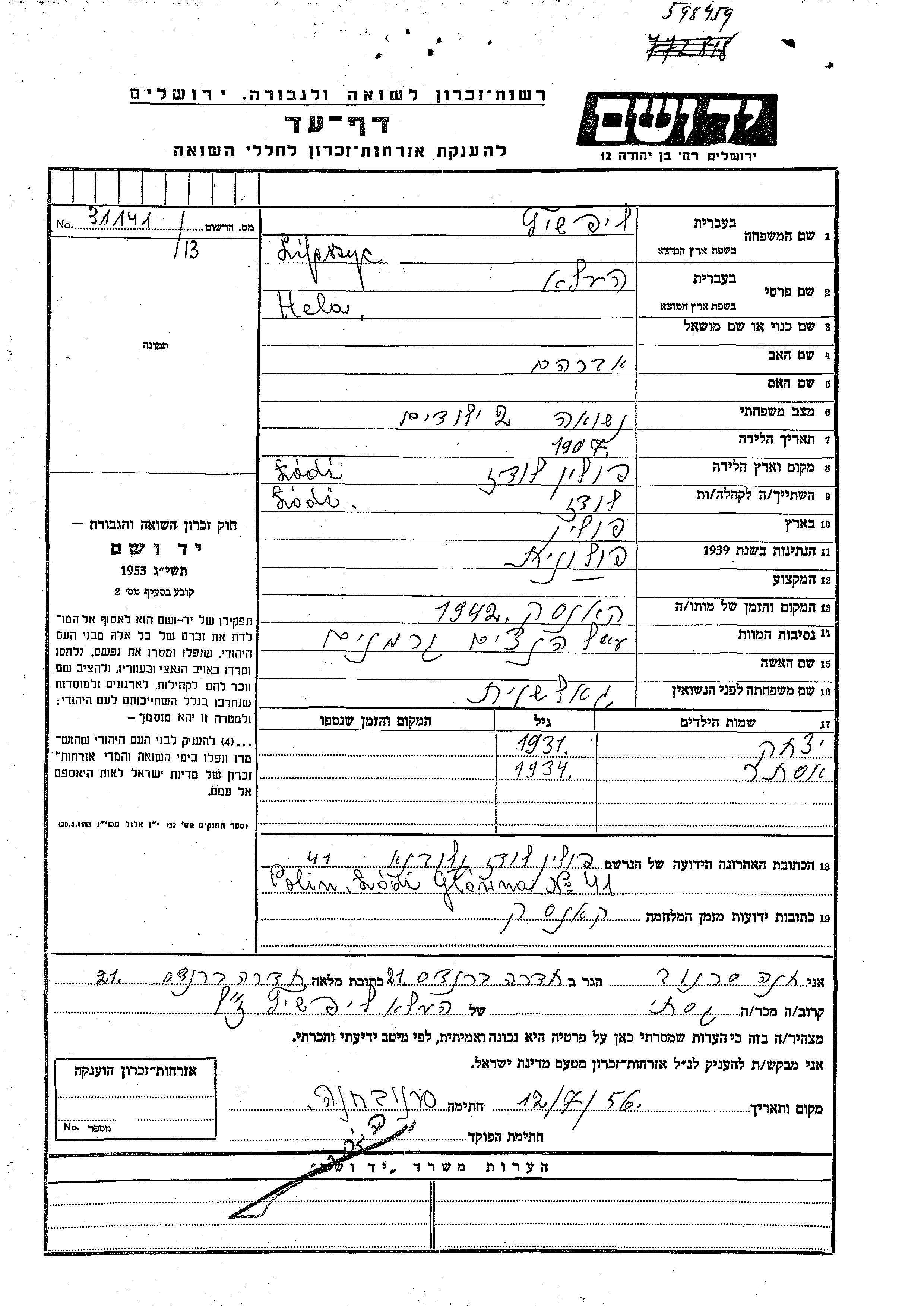 Яд Вашем - Листы свидетельских показаний Мемориального фонда
