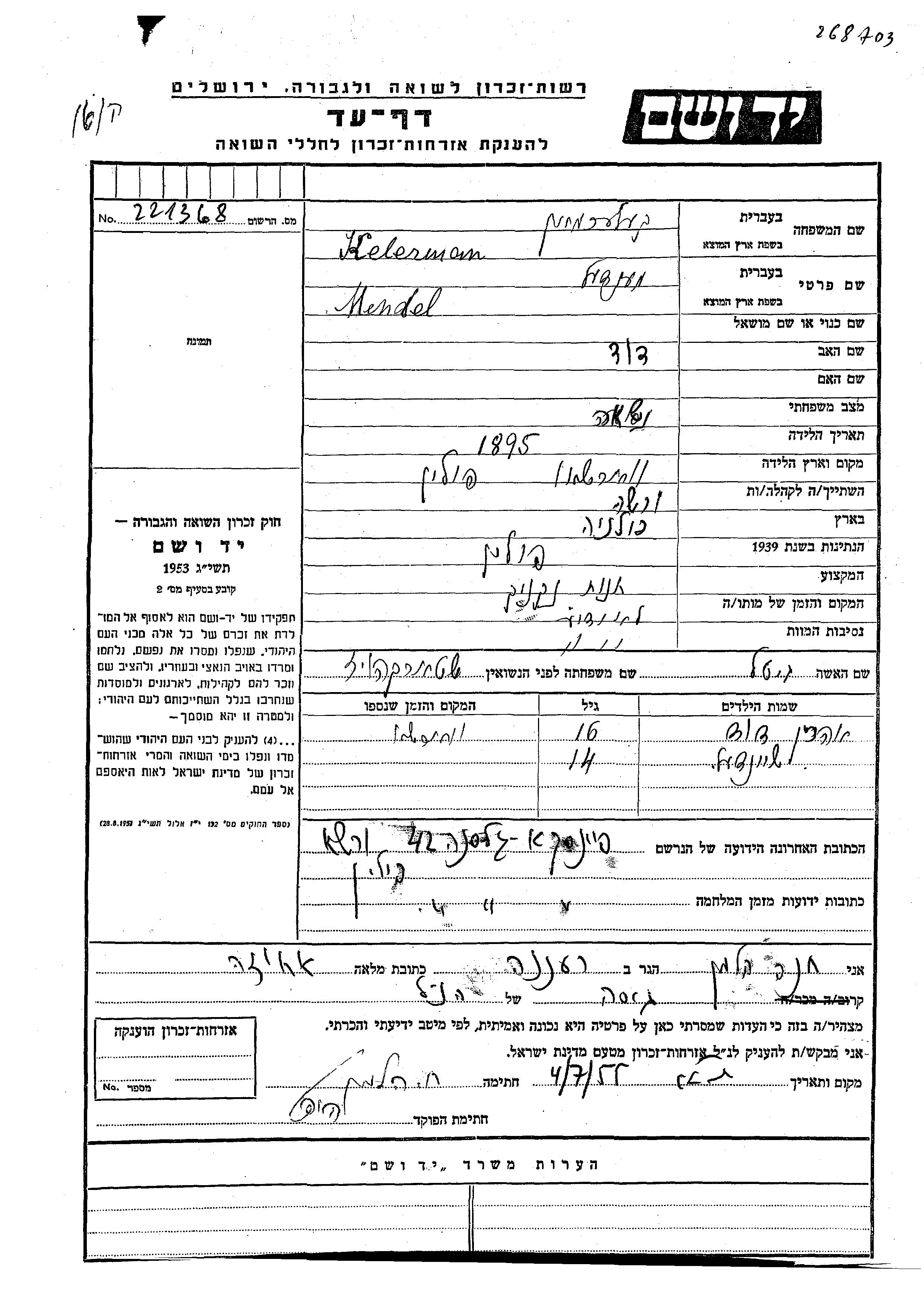 Яд Вашем - Листы свидетельских показаний Мемориального фонда