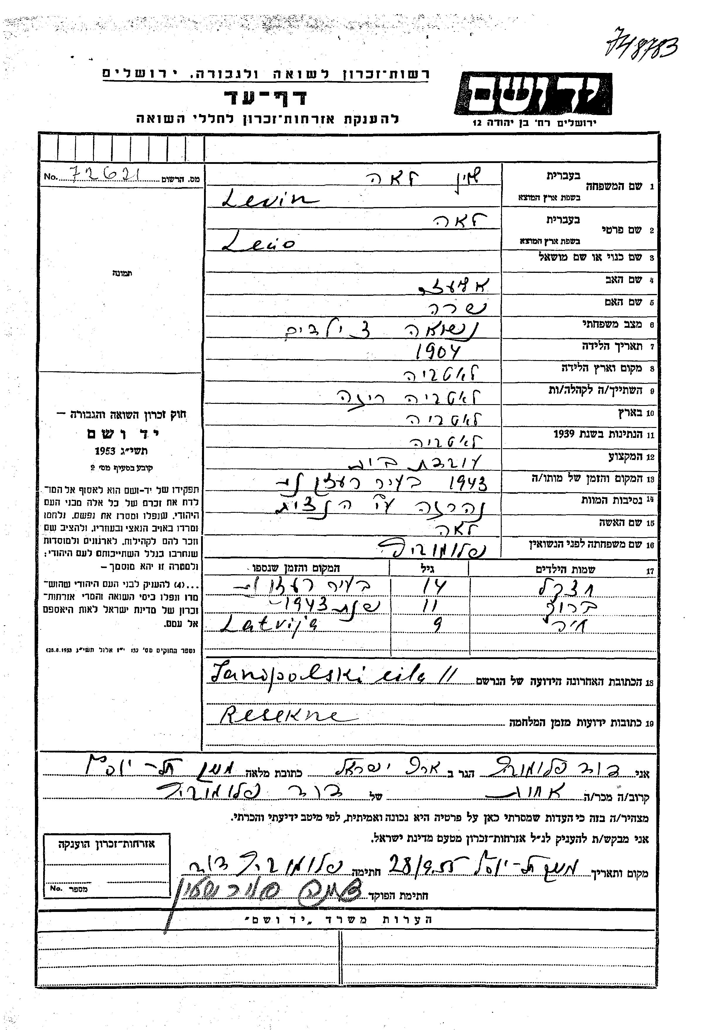 Левин Барух Рига, Латвия Лист свидетельских показаний