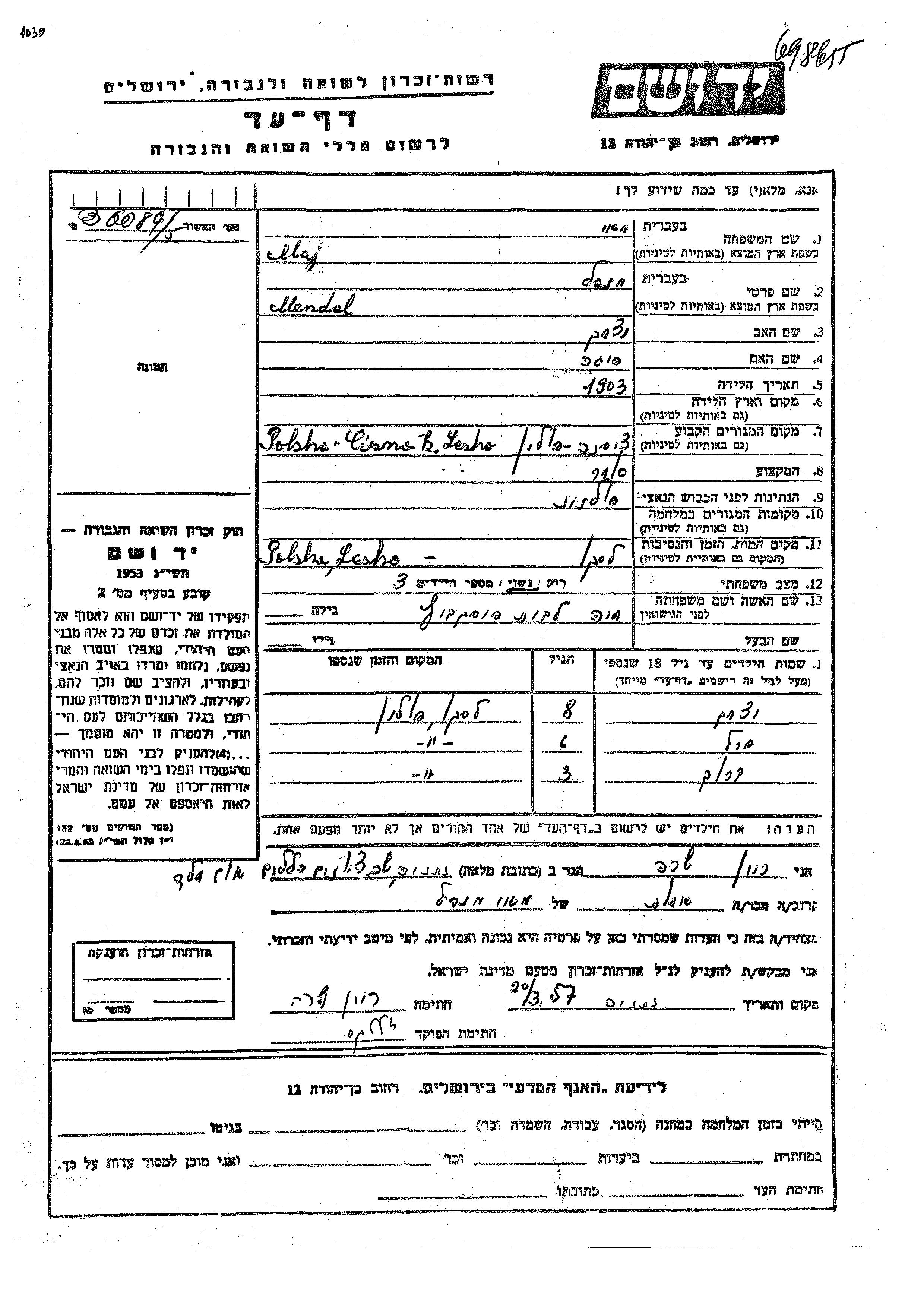 Яд Вашем - Листы свидетельских показаний Мемориального фонда