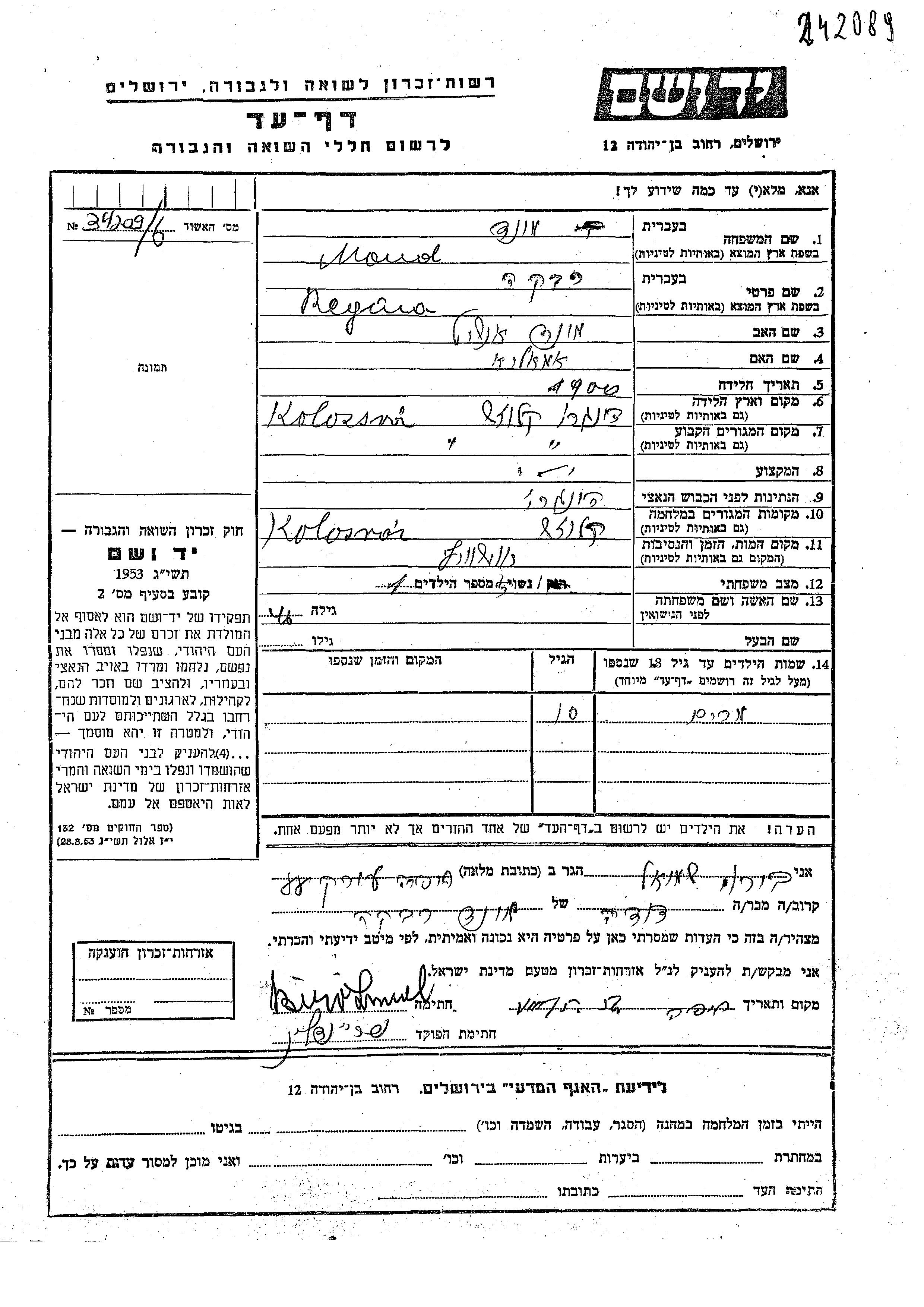 Поиск подателя Листа свидетельских показаний. Поиск по любому имени, включая уменьшительное или прозвище