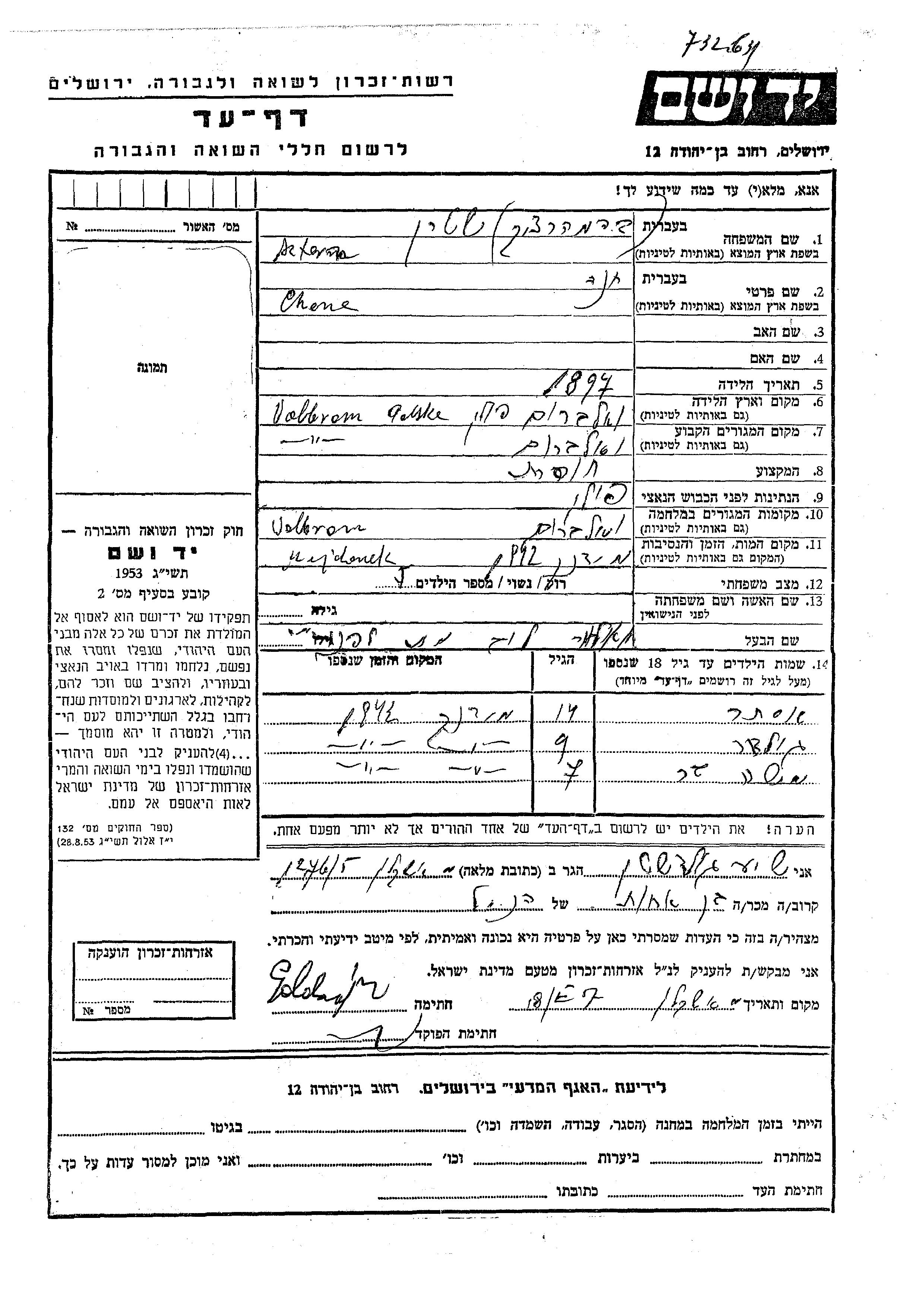 Штерна Штерн Голда Вольбром, Польша Лист свидетельских показаний