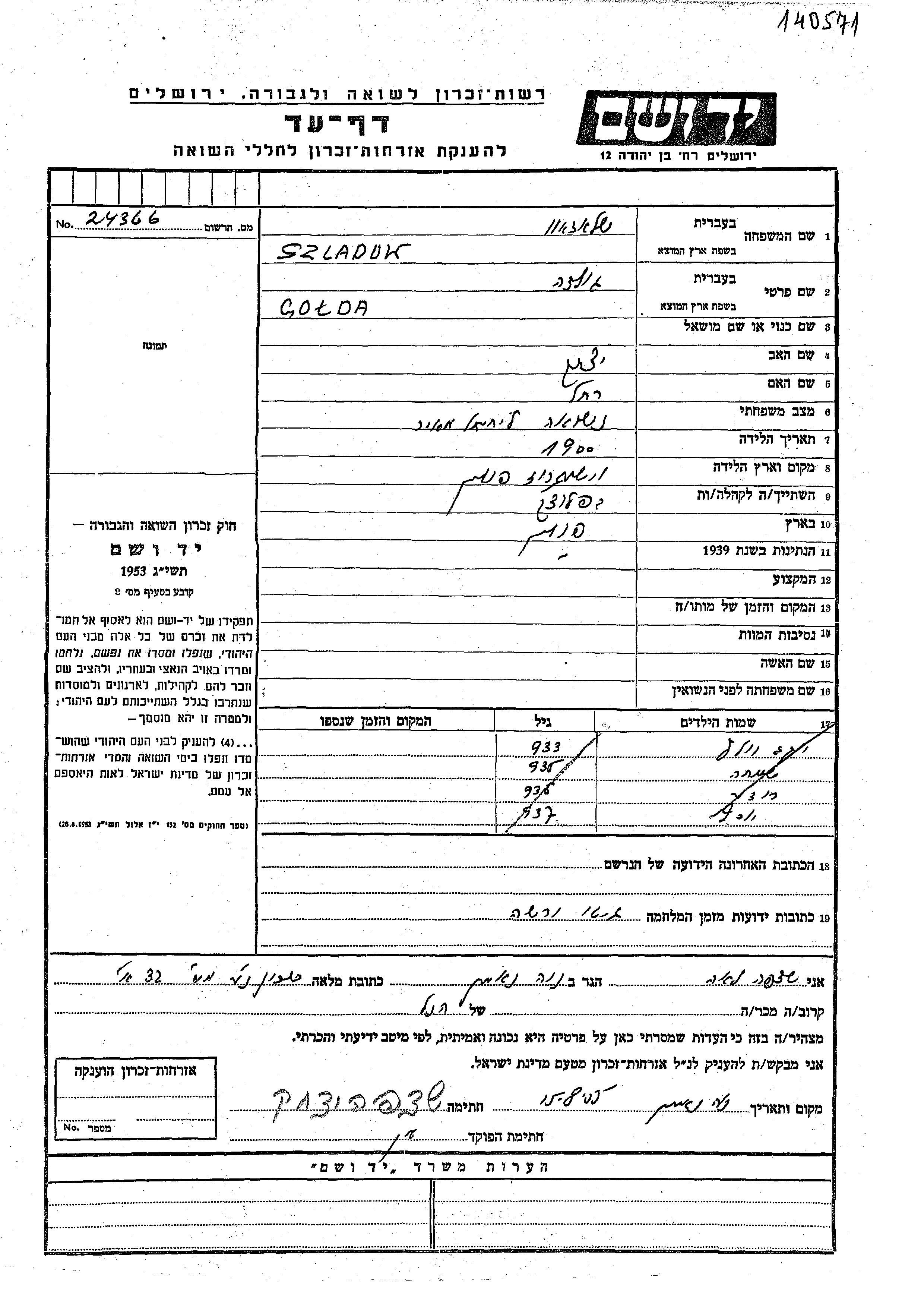 Яд Вашем - Листы свидетельских показаний Мемориального фонда