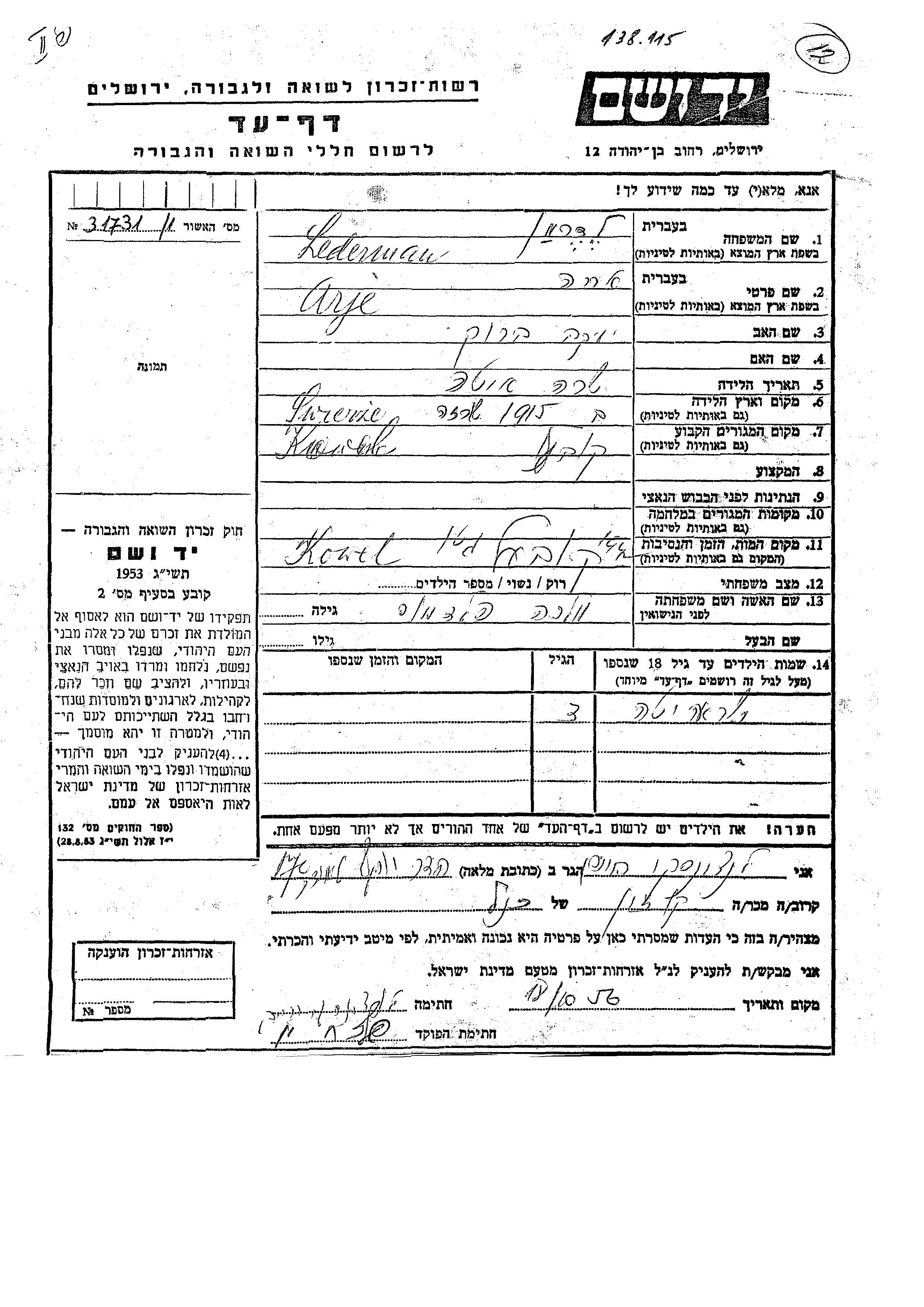 Яд Вашем - Листы свидетельских показаний Мемориального фонда