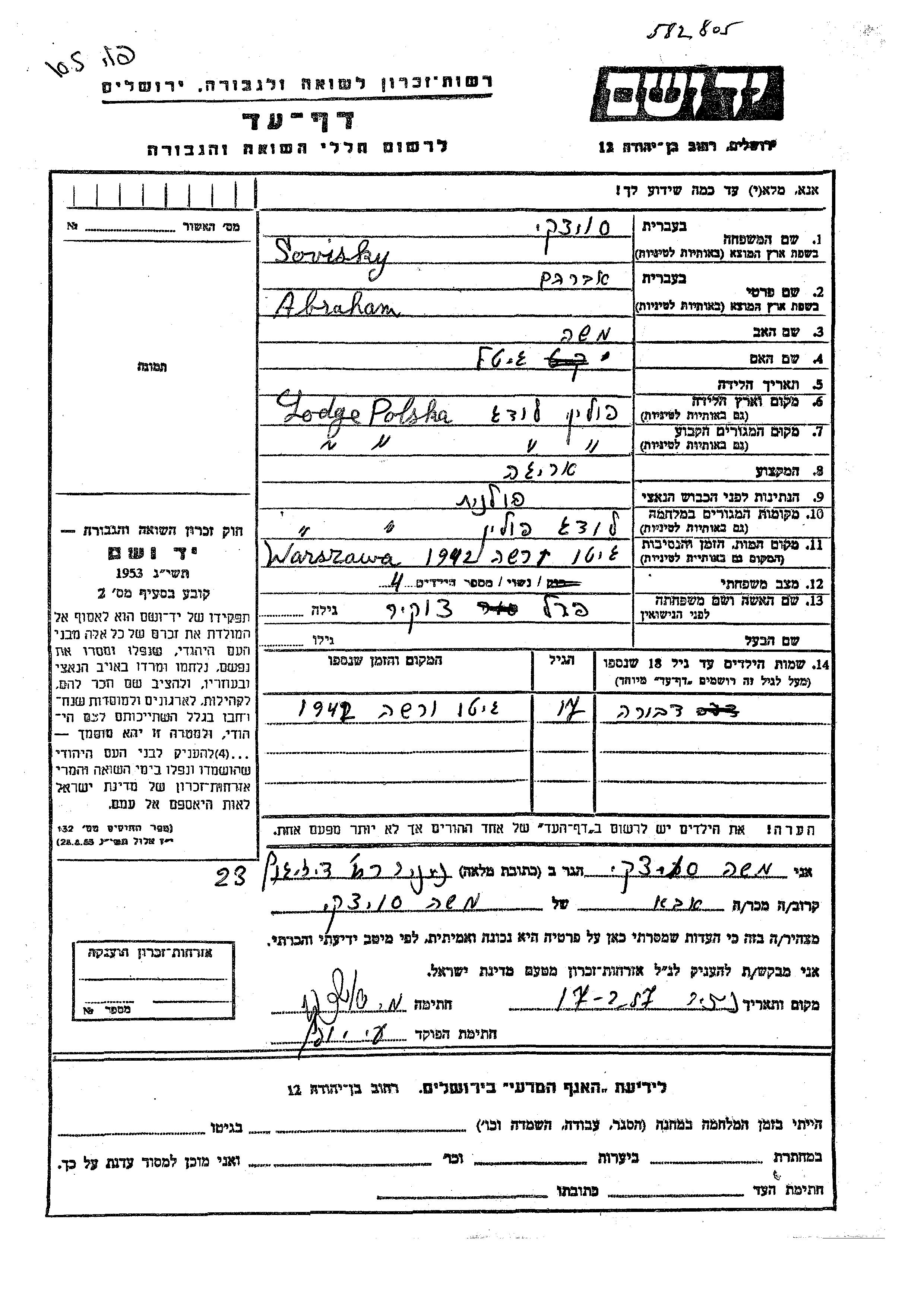 Яд Вашем - Листы свидетельских показаний Мемориального фонда