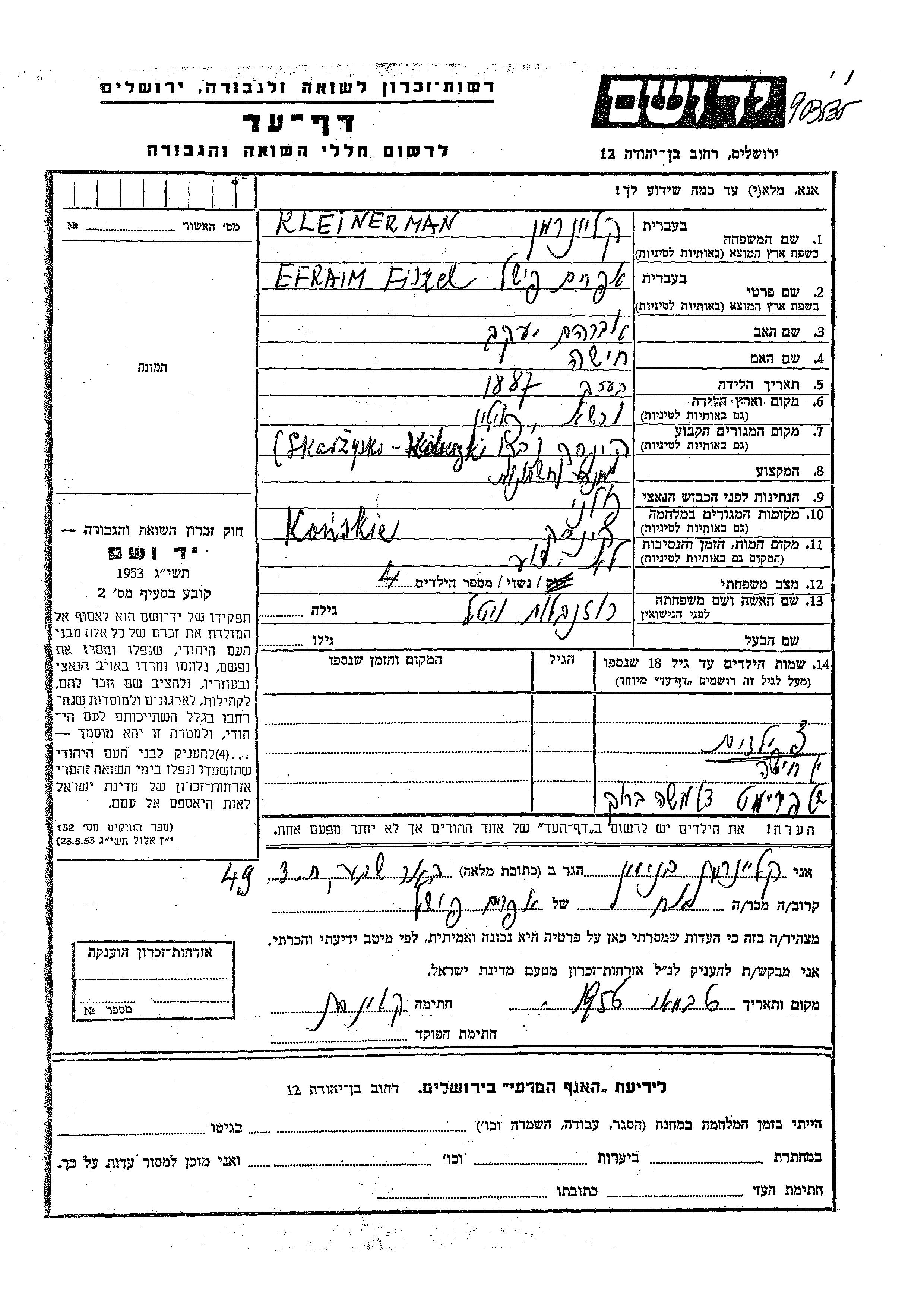 Яд Вашем - Листы свидетельских показаний Мемориального фонда
