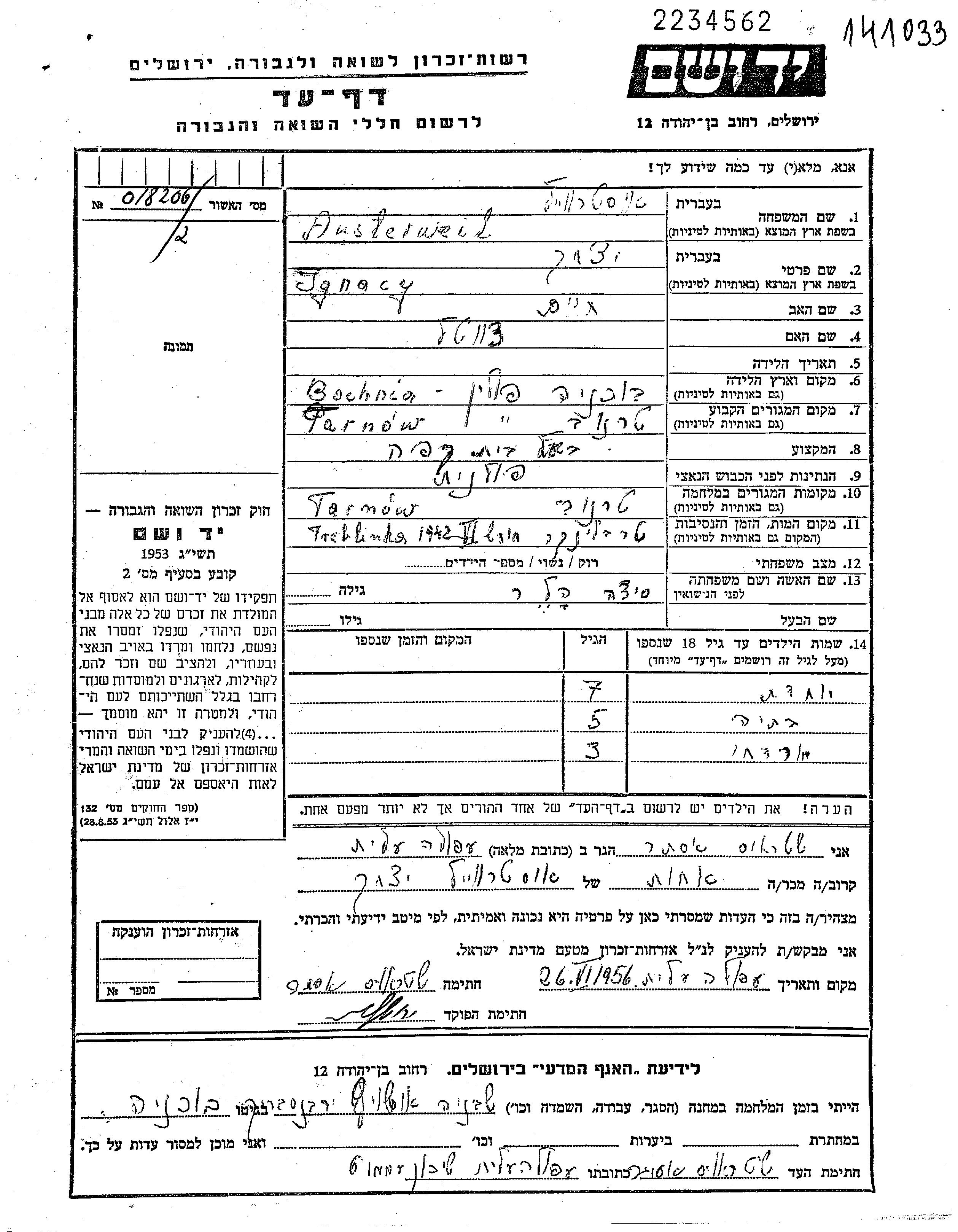 Яд Вашем - Листы свидетельских показаний Мемориального фонда