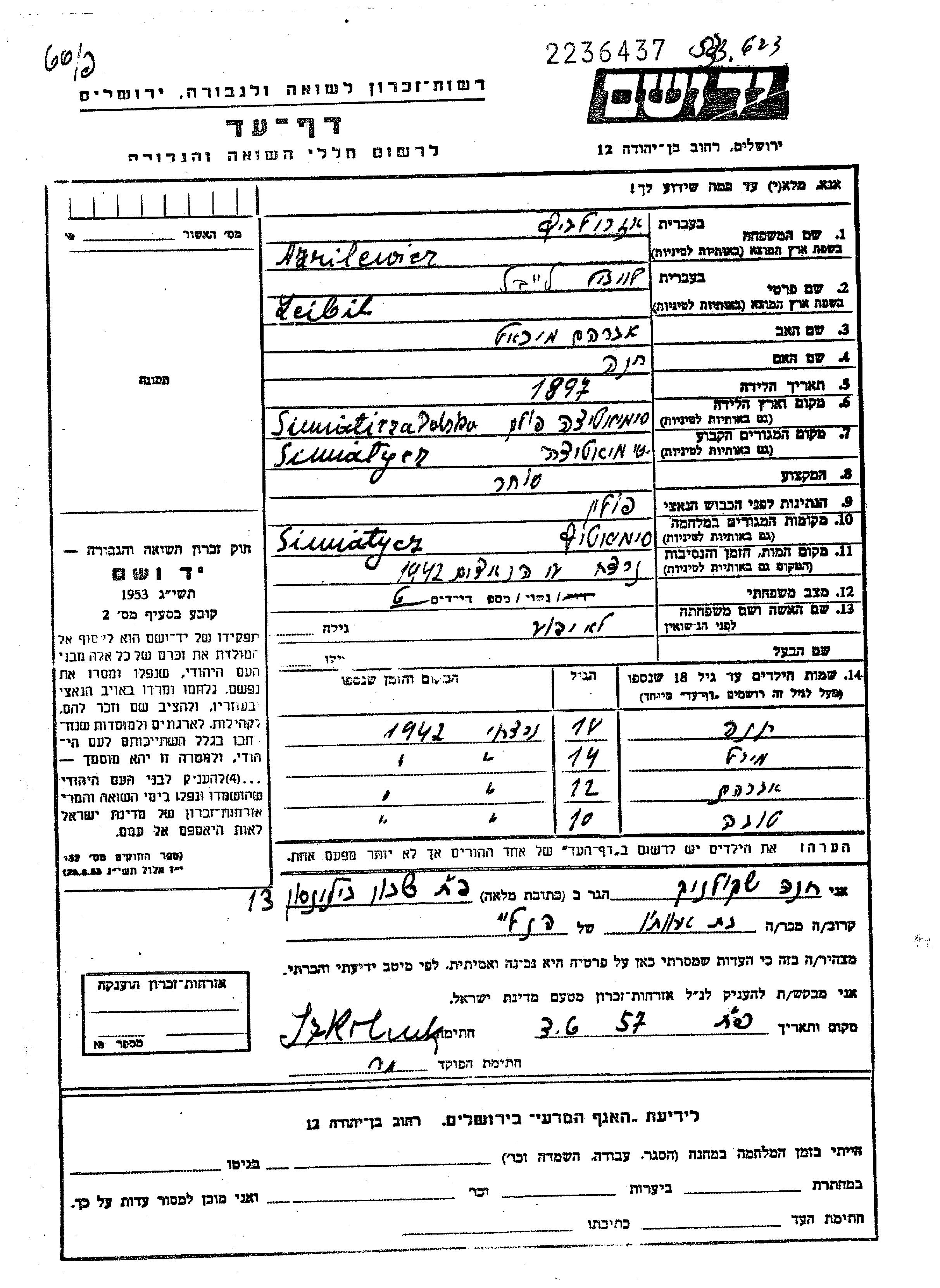Азрилевич Авраам Семятыче, Польша Лист свидетельских показаний