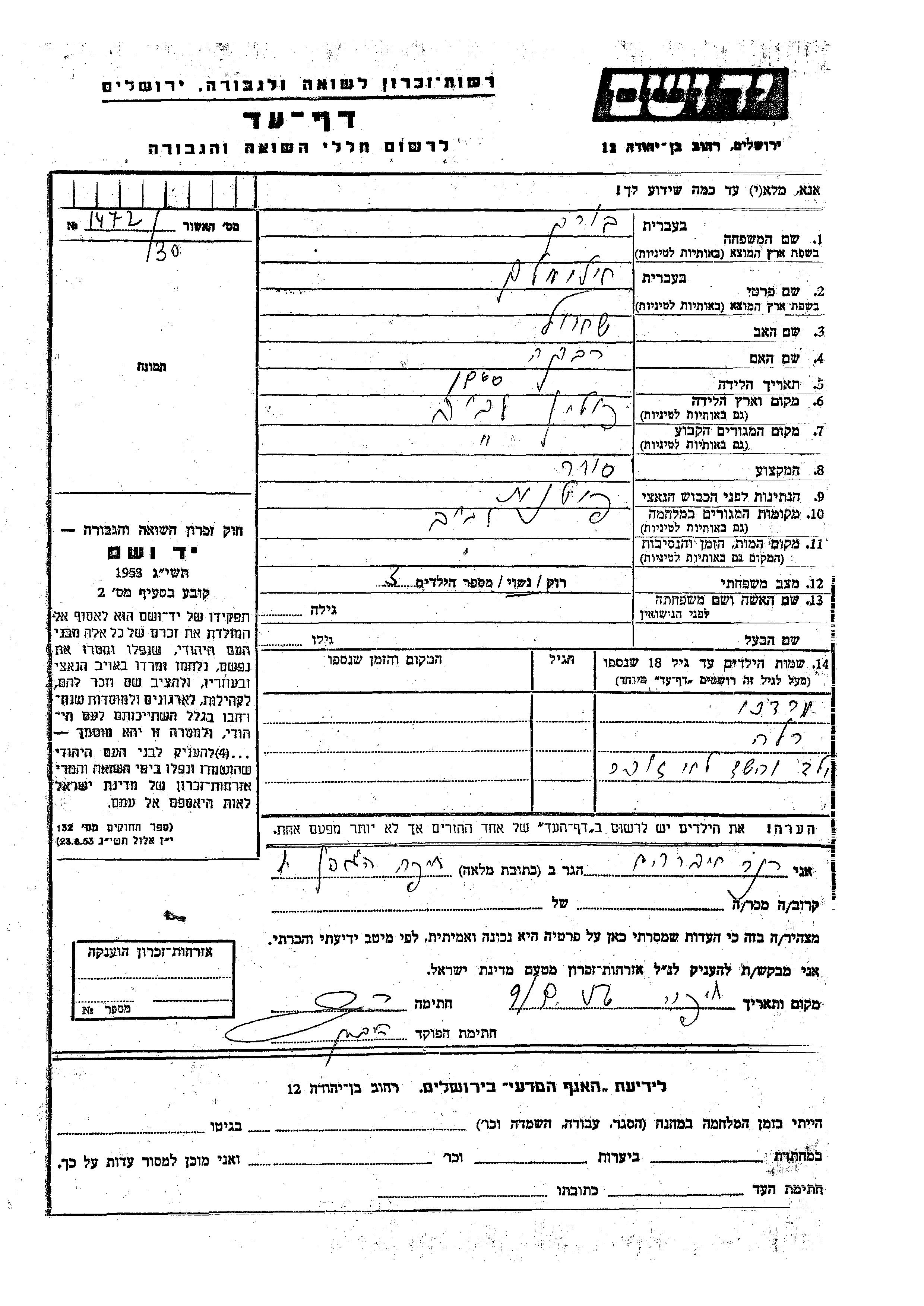 Поиск подателя Листа свидетельских показаний. Поиск по любому имени, включая уменьшительное или прозвище