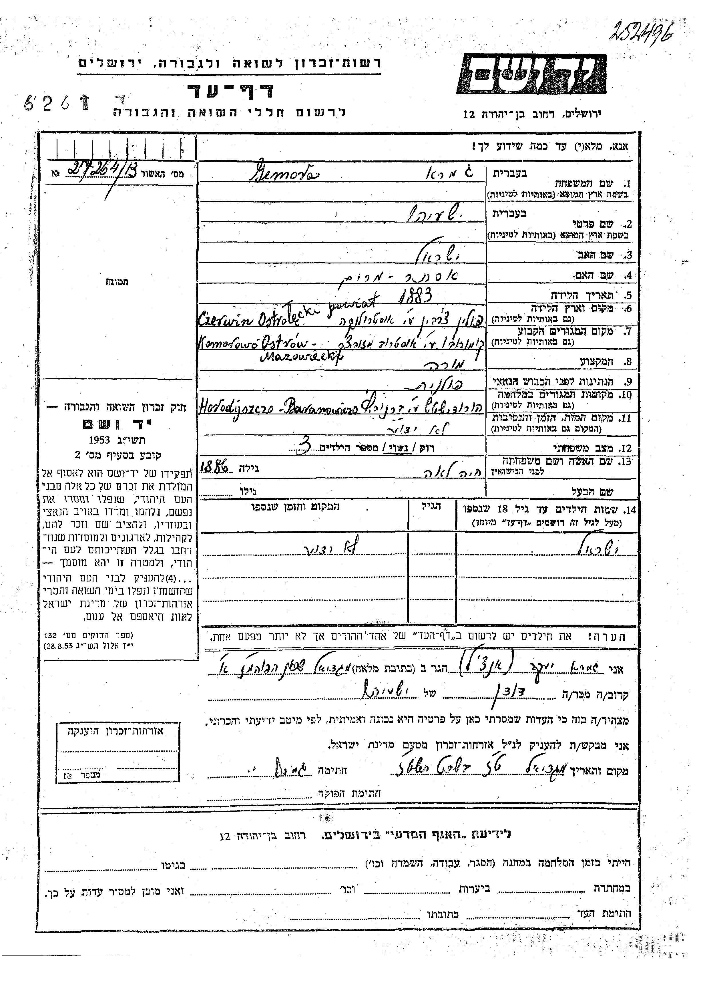 Яд Вашем - Листы свидетельских показаний Мемориального фонда