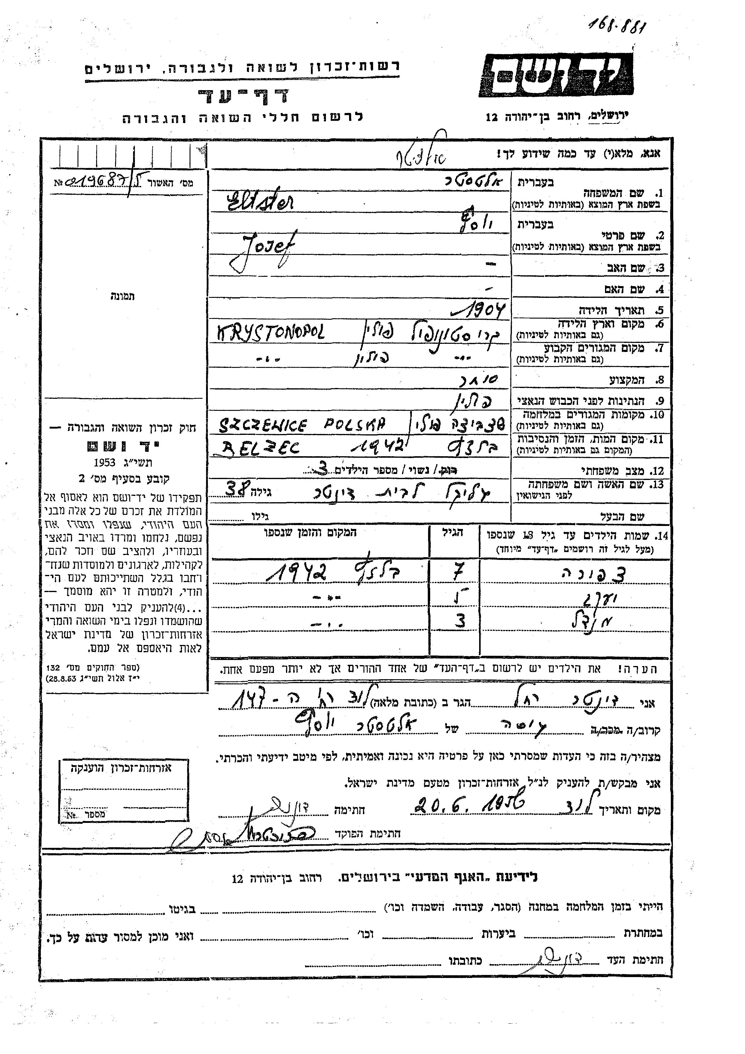 Яд Вашем - Листы свидетельских показаний Мемориального фонда