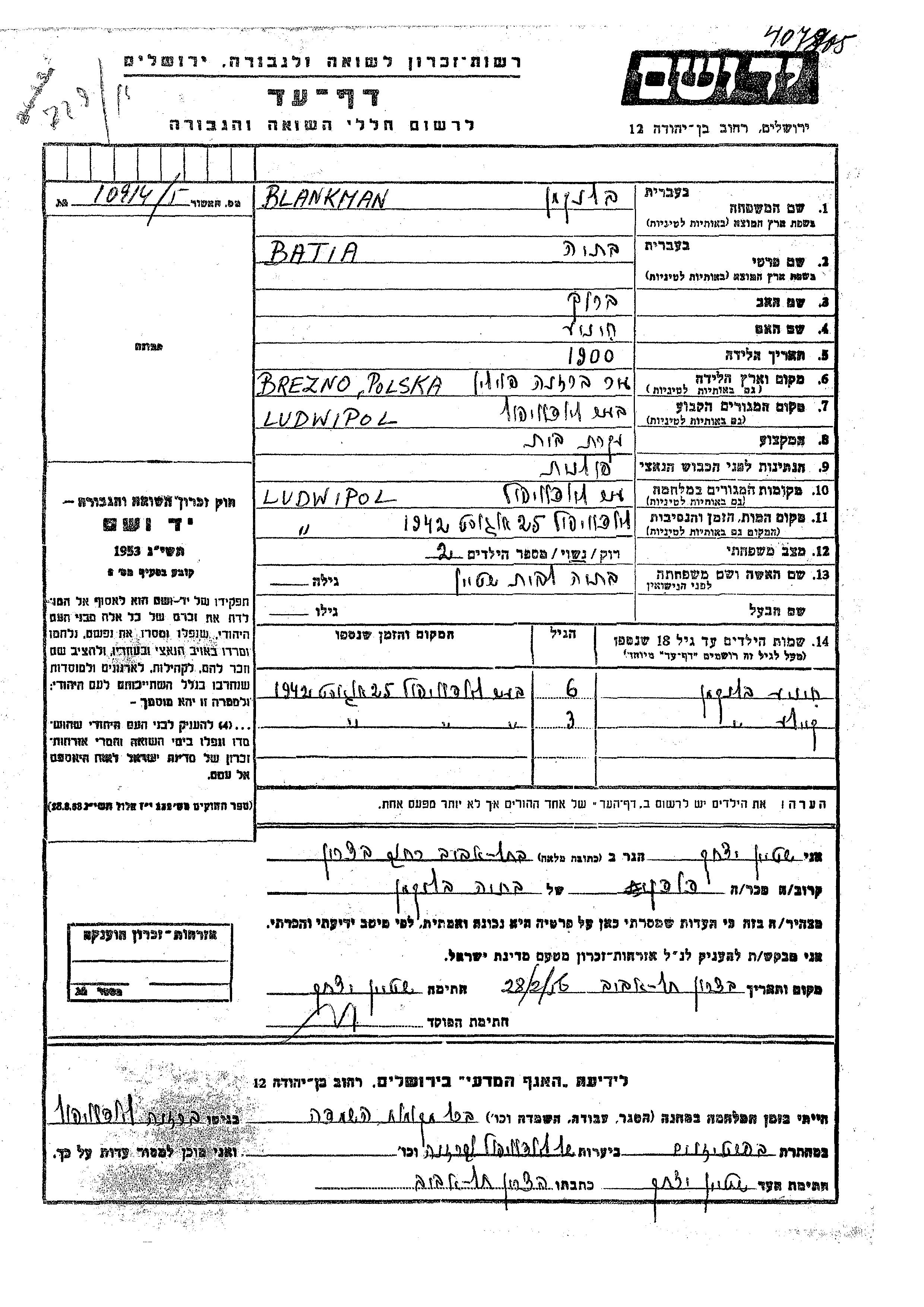 Бланкман Хизе Людвиполь, Польша Лист свидетельских показаний