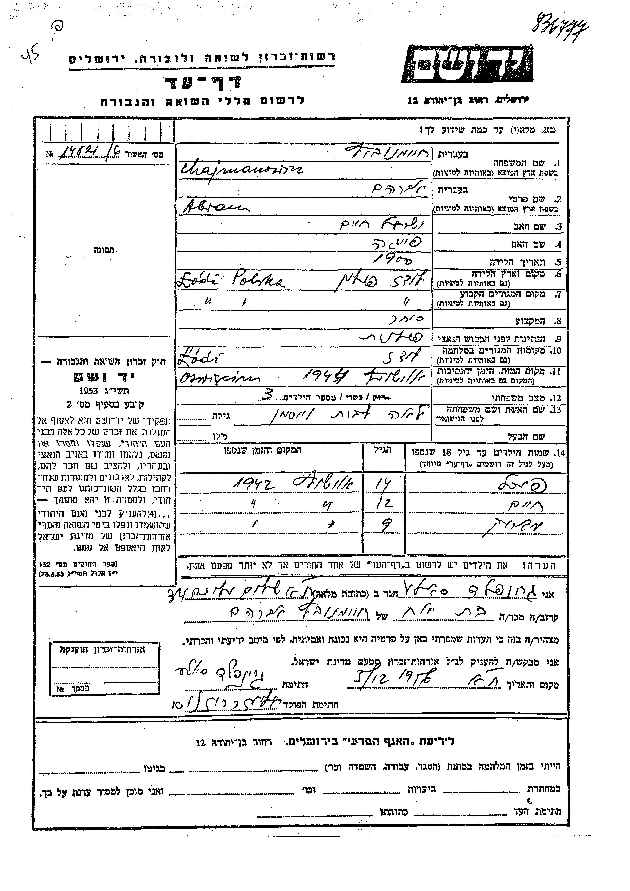 Яд Вашем - Листы свидетельских показаний Мемориального фонда