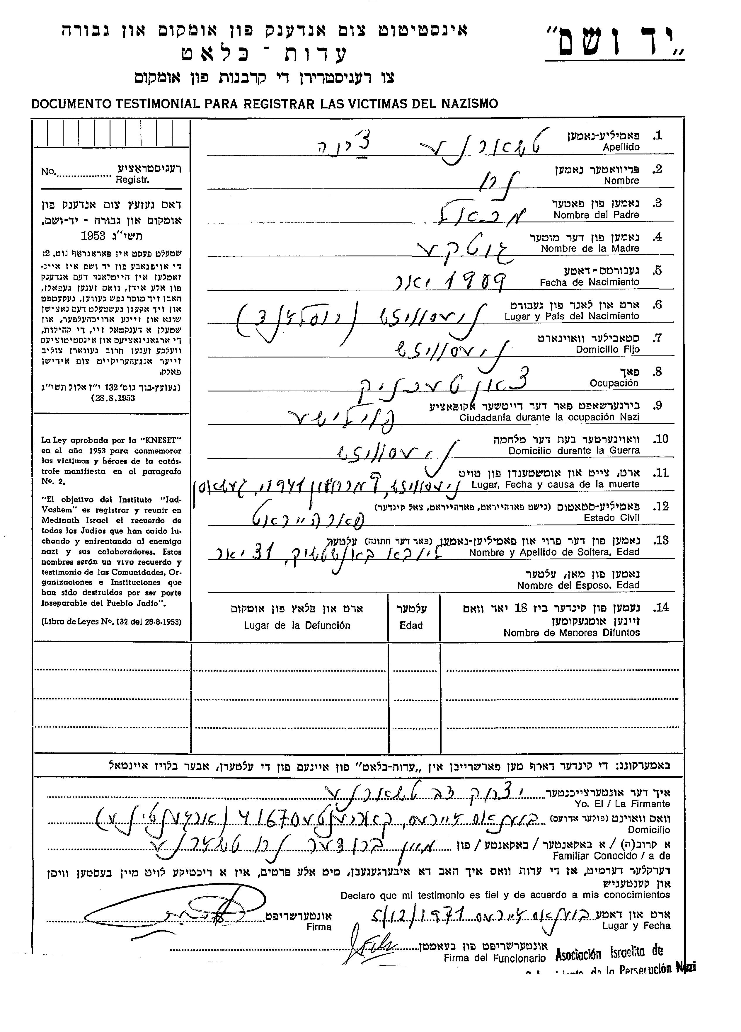 Яд Вашем - Листы свидетельских показаний Мемориального фонда