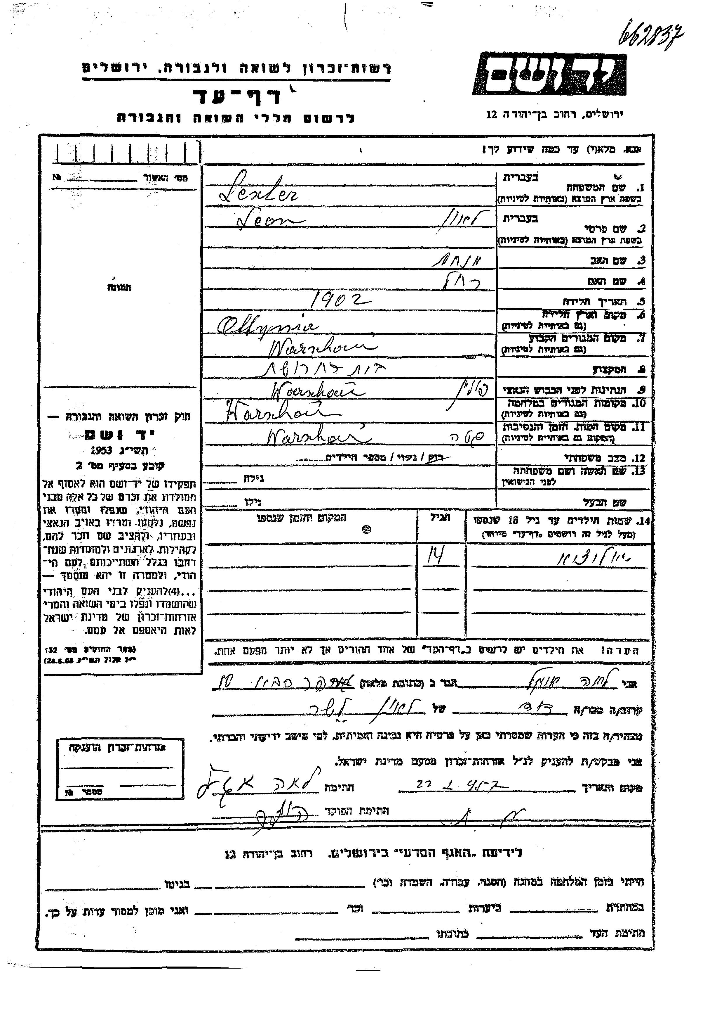 Яд Вашем - Листы свидетельских показаний Мемориального фонда