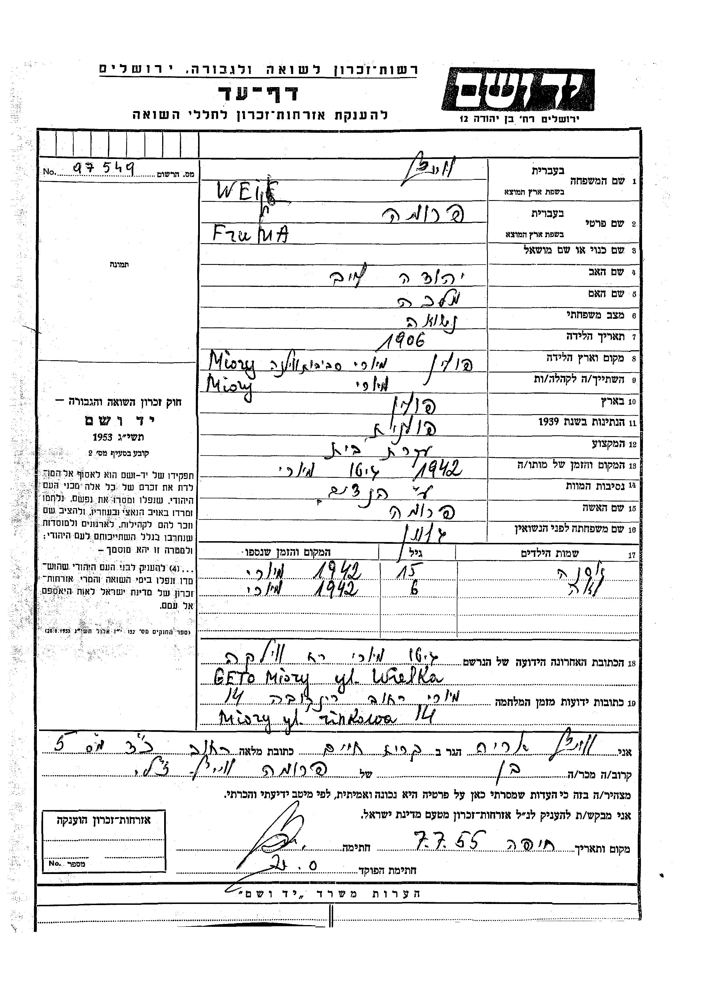 Вайсс Лея Миоры, Польша Лист свидетельских показаний