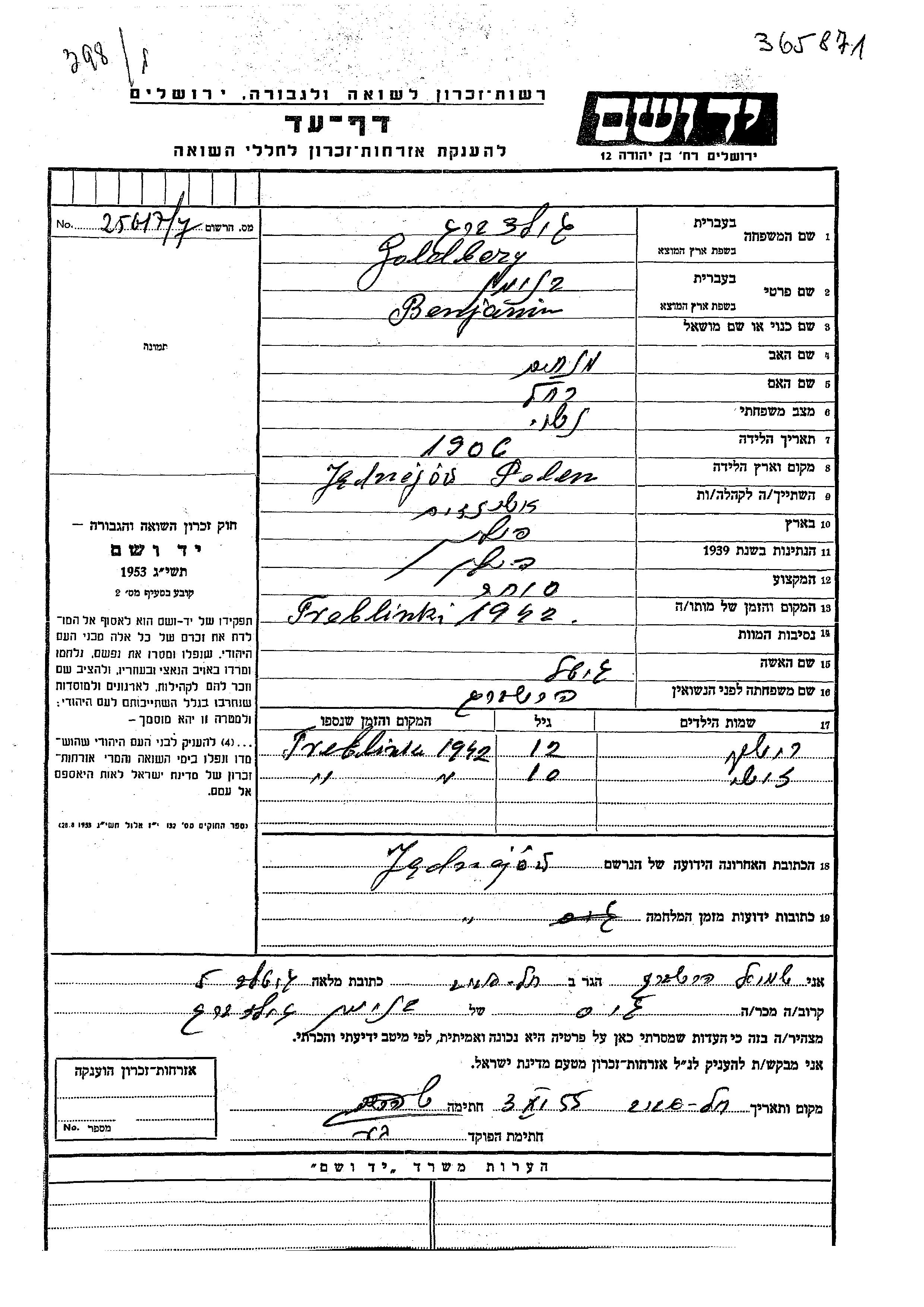 Яд Вашем - Листы свидетельских показаний Мемориального фонда