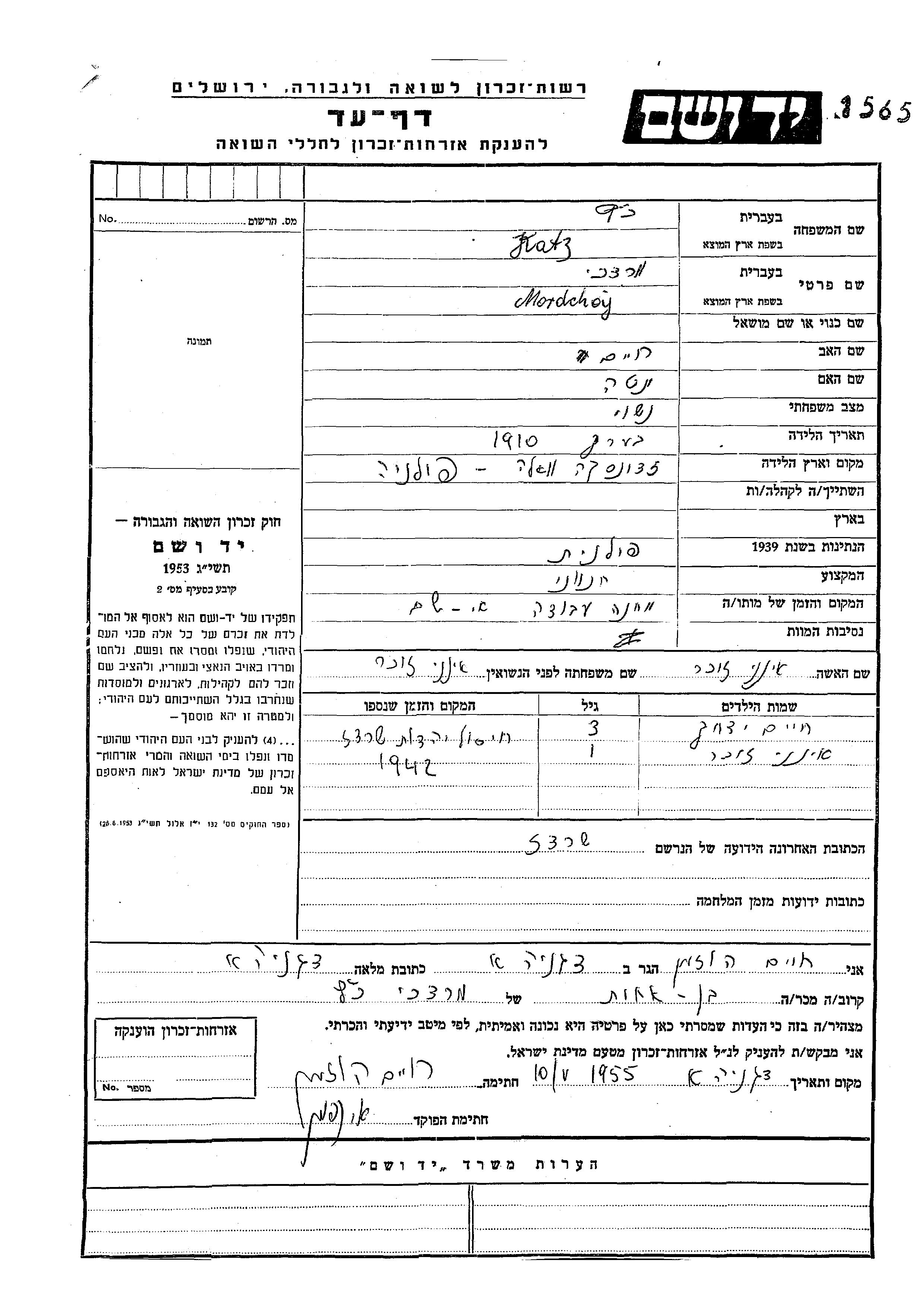 Яд Вашем - Листы свидетельских показаний Мемориального фонда