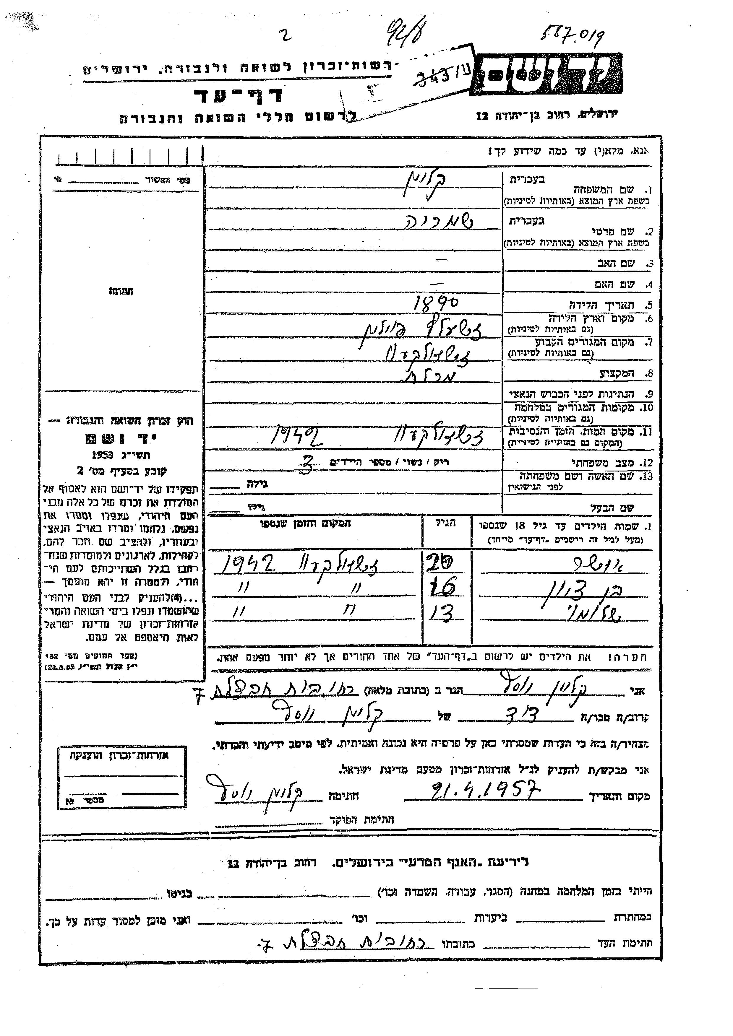 Яд Вашем - Листы свидетельских показаний Мемориального фонда
