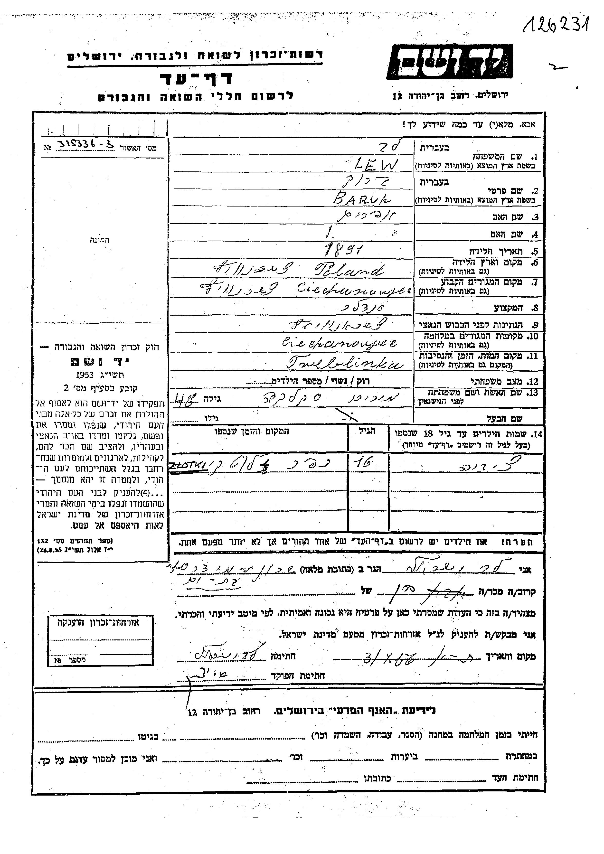 Яд Вашем - Листы свидетельских показаний Мемориального фонда
