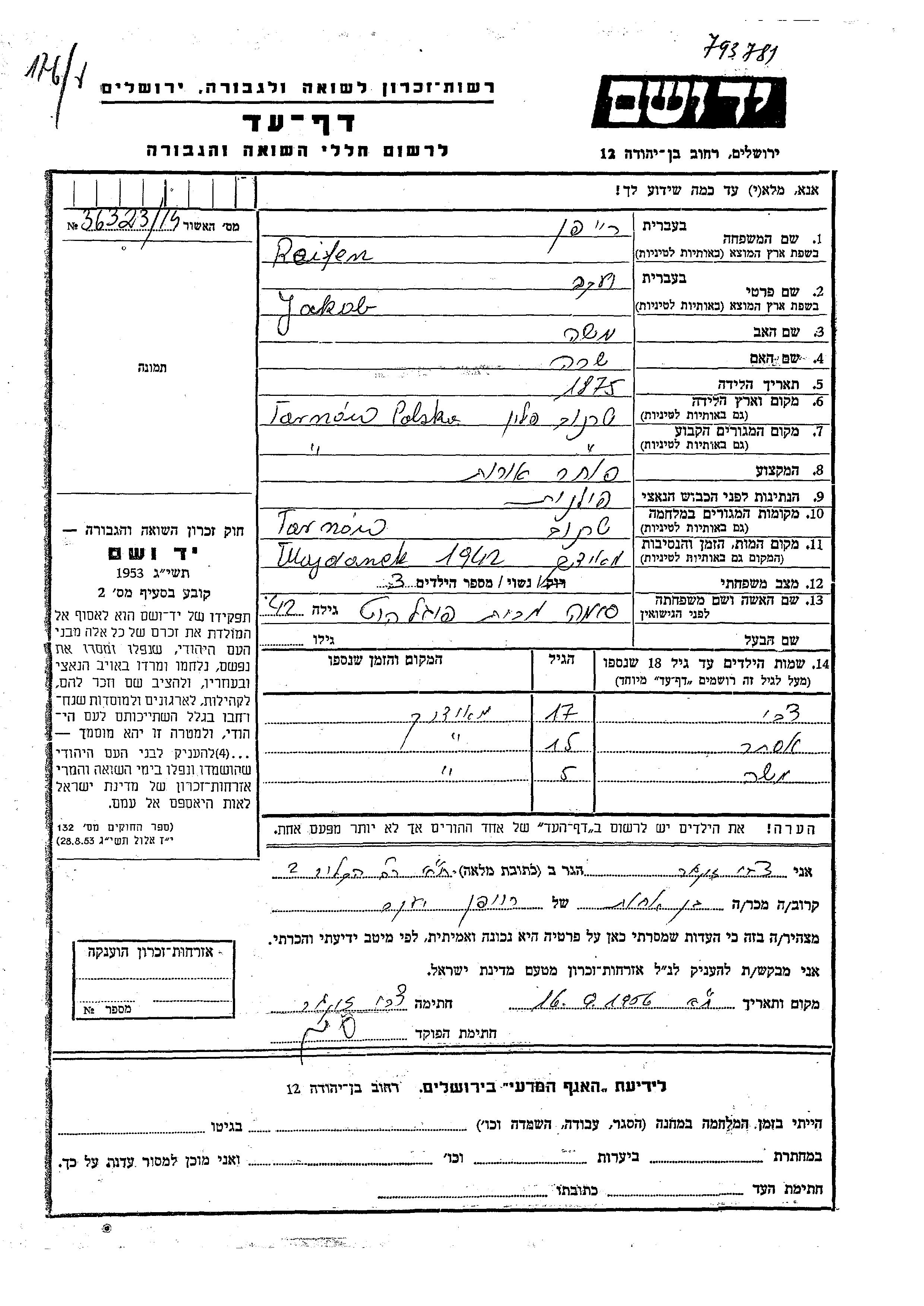 Райфен Эстер Тарнув, Польша Лист свидетельских показаний