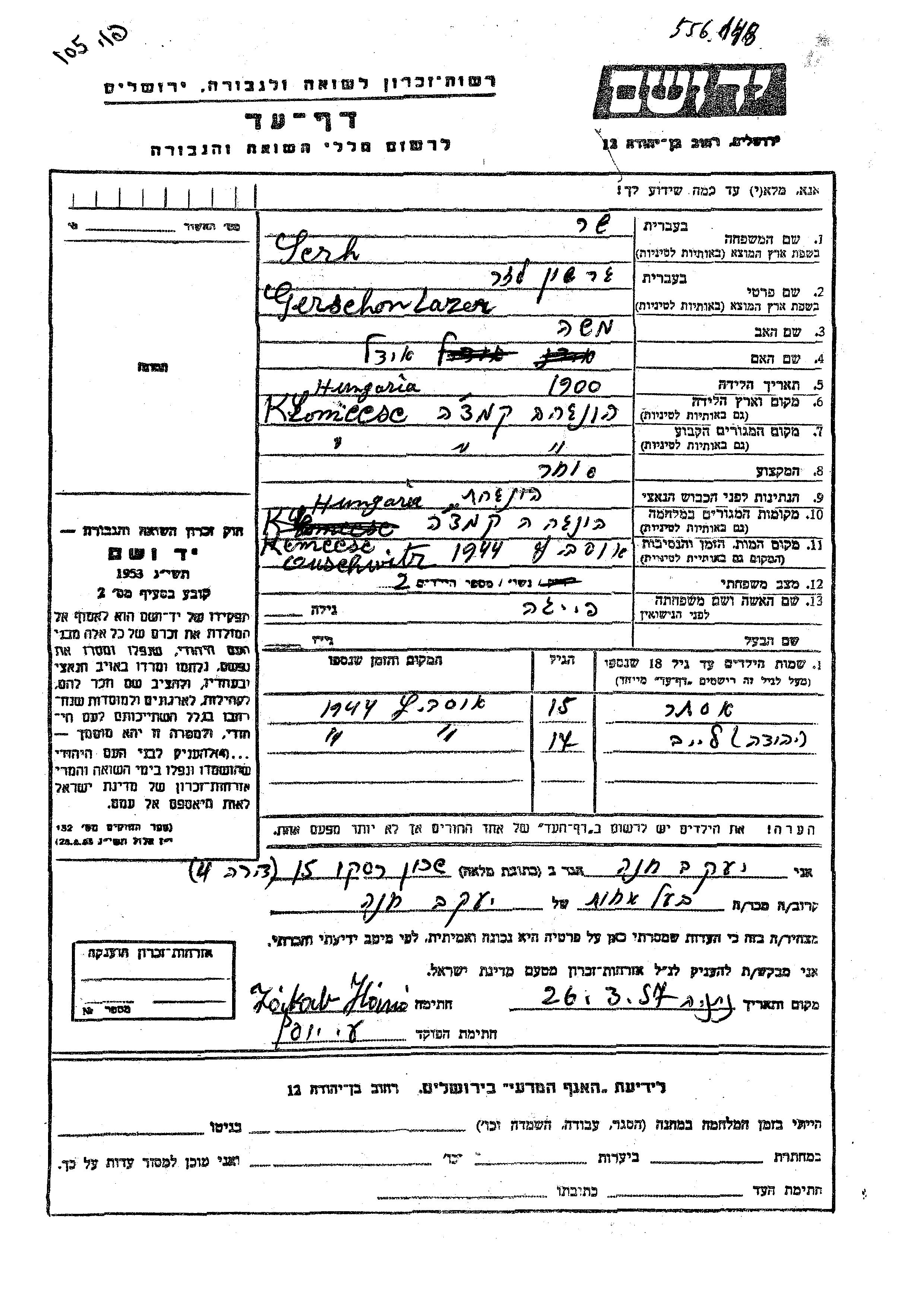 Шер Иегуда Лейб Кемече, Венгрия Лист свидетельских показаний