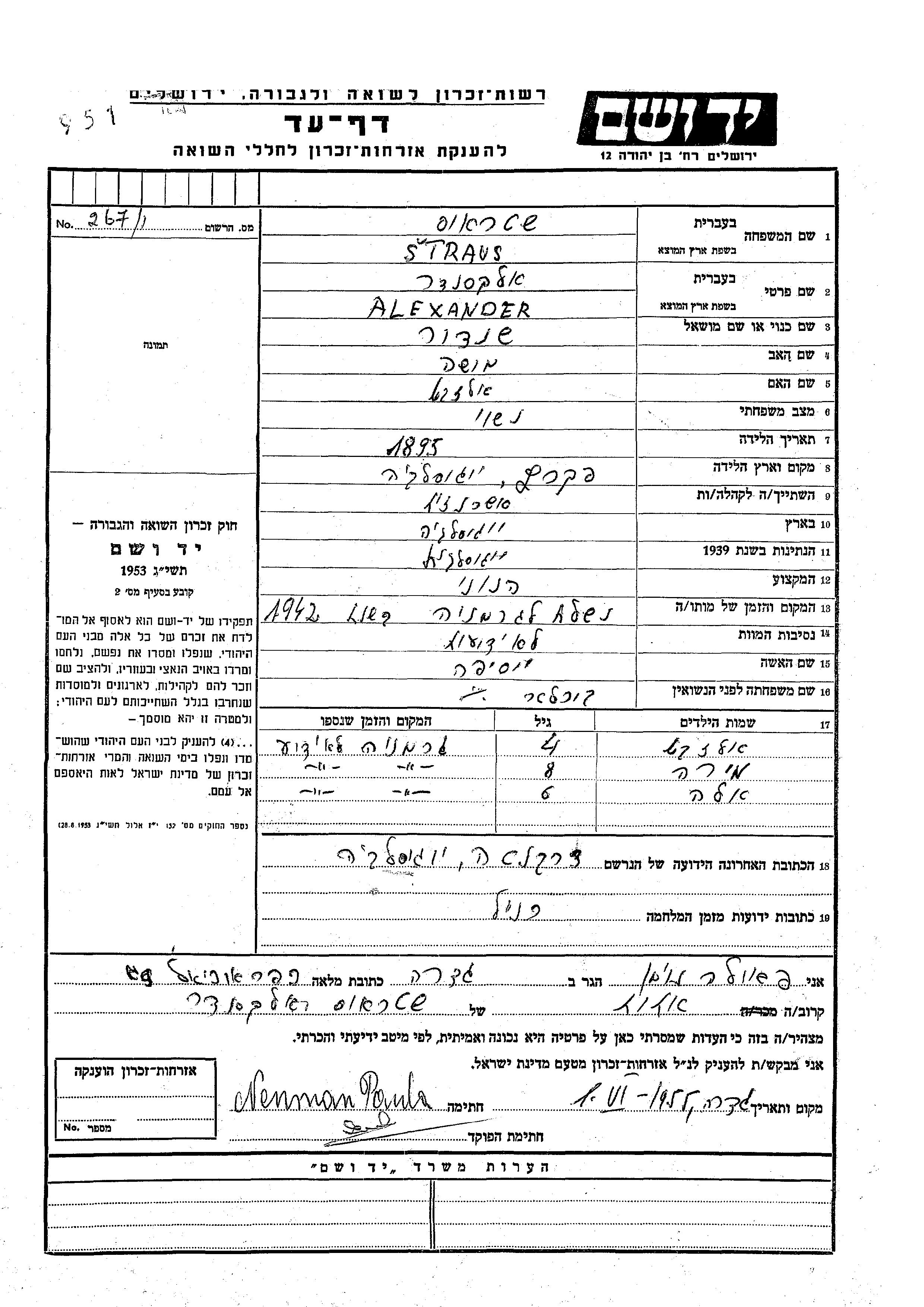 Элизабет Штраус Александер Йосифа девичья фамилия Буххалтер. Ребенок. Место жительства до войны: Cerclada, Югославия. Место во время войны: Cerclada, Югославия.