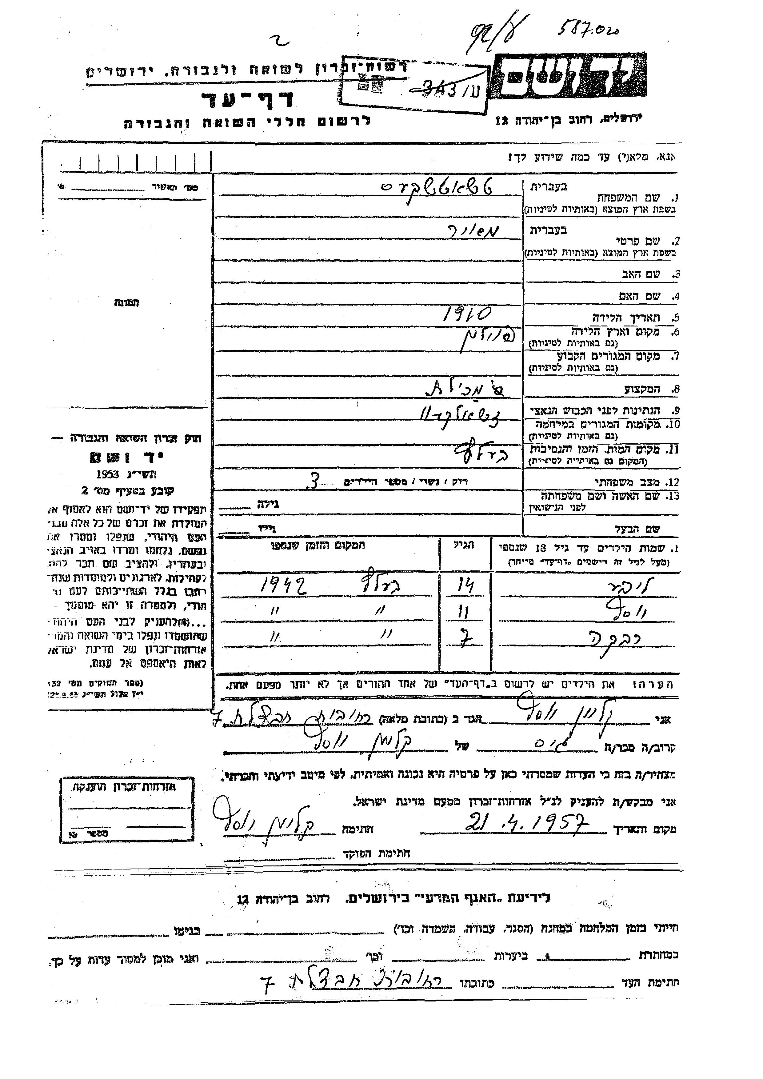 Яд Вашем - Листы свидетельских показаний Мемориального фонда