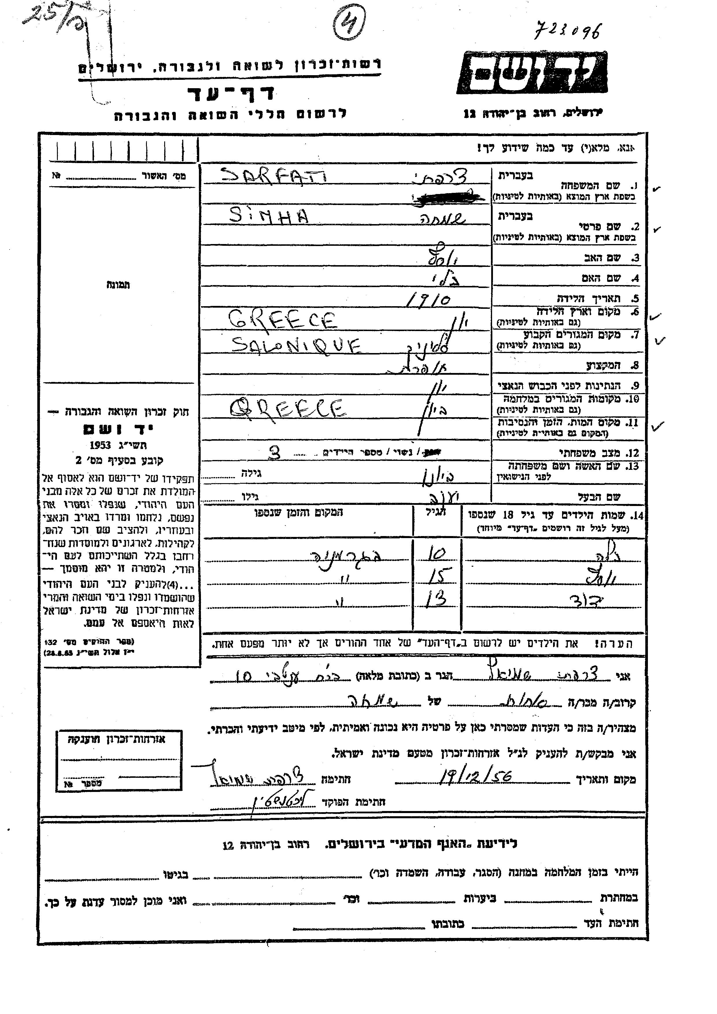 Байоно Иосеф Салоники, Греция Лист свидетельских показаний