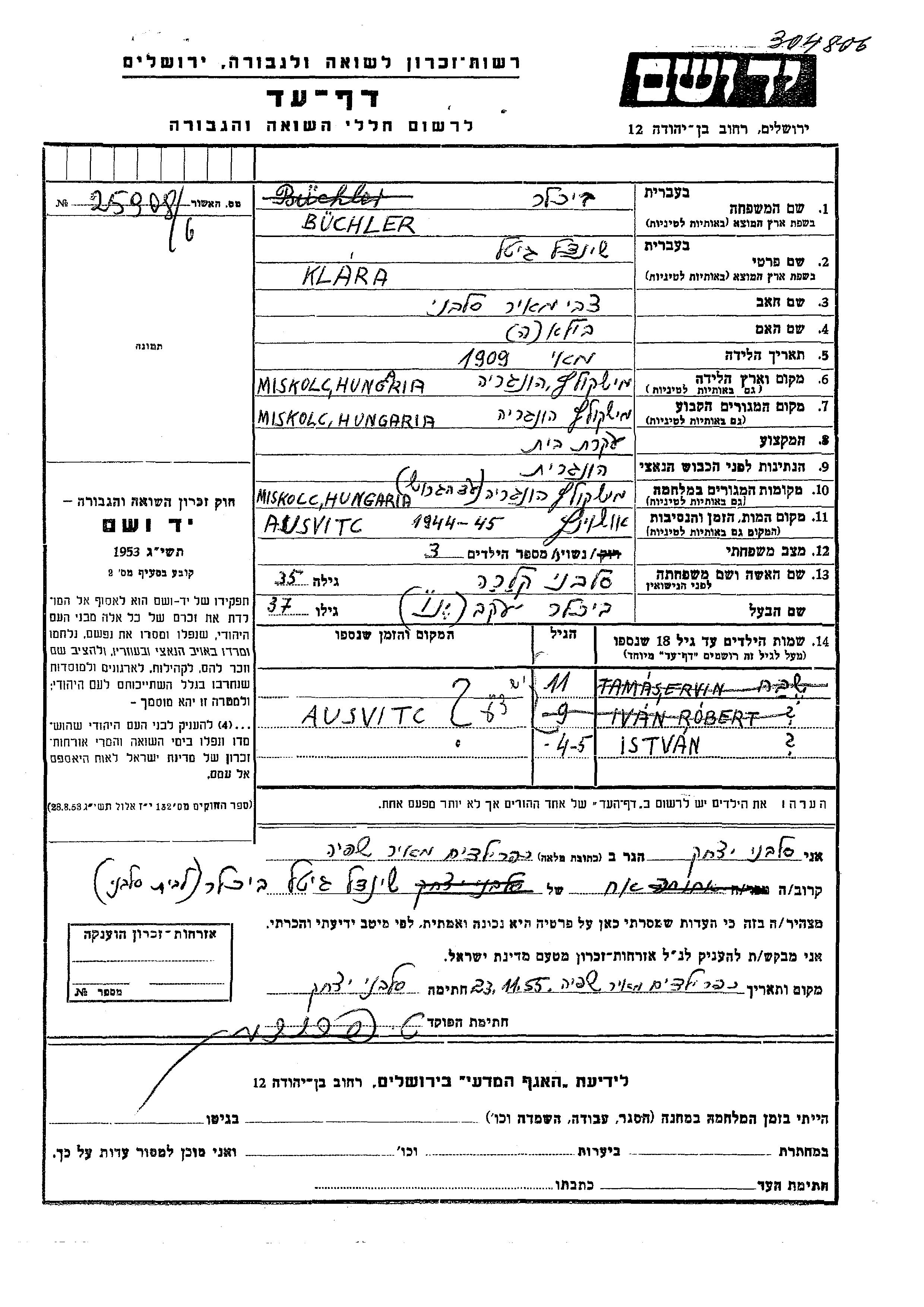Яд Вашем - Листы свидетельских показаний Мемориального фонда