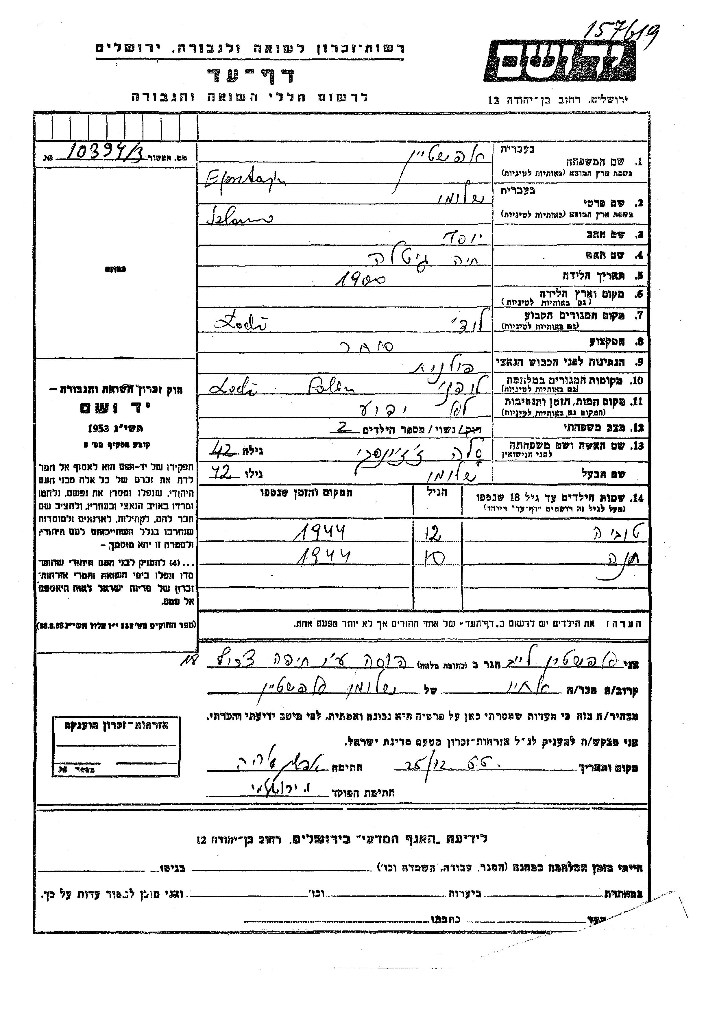 Яд Вашем - Листы свидетельских показаний Мемориального фонда