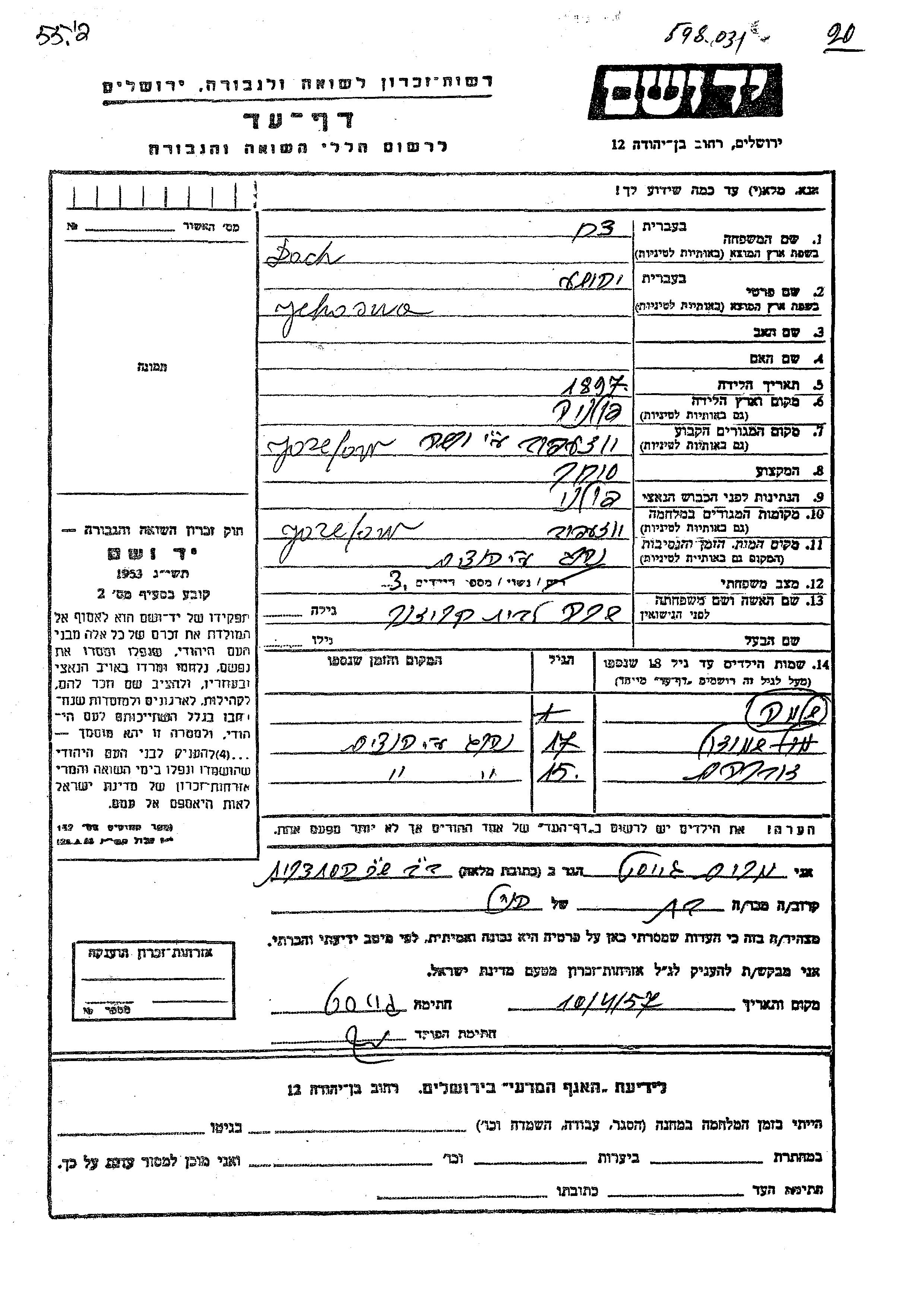 Яд Вашем - Листы свидетельских показаний Мемориального фонда