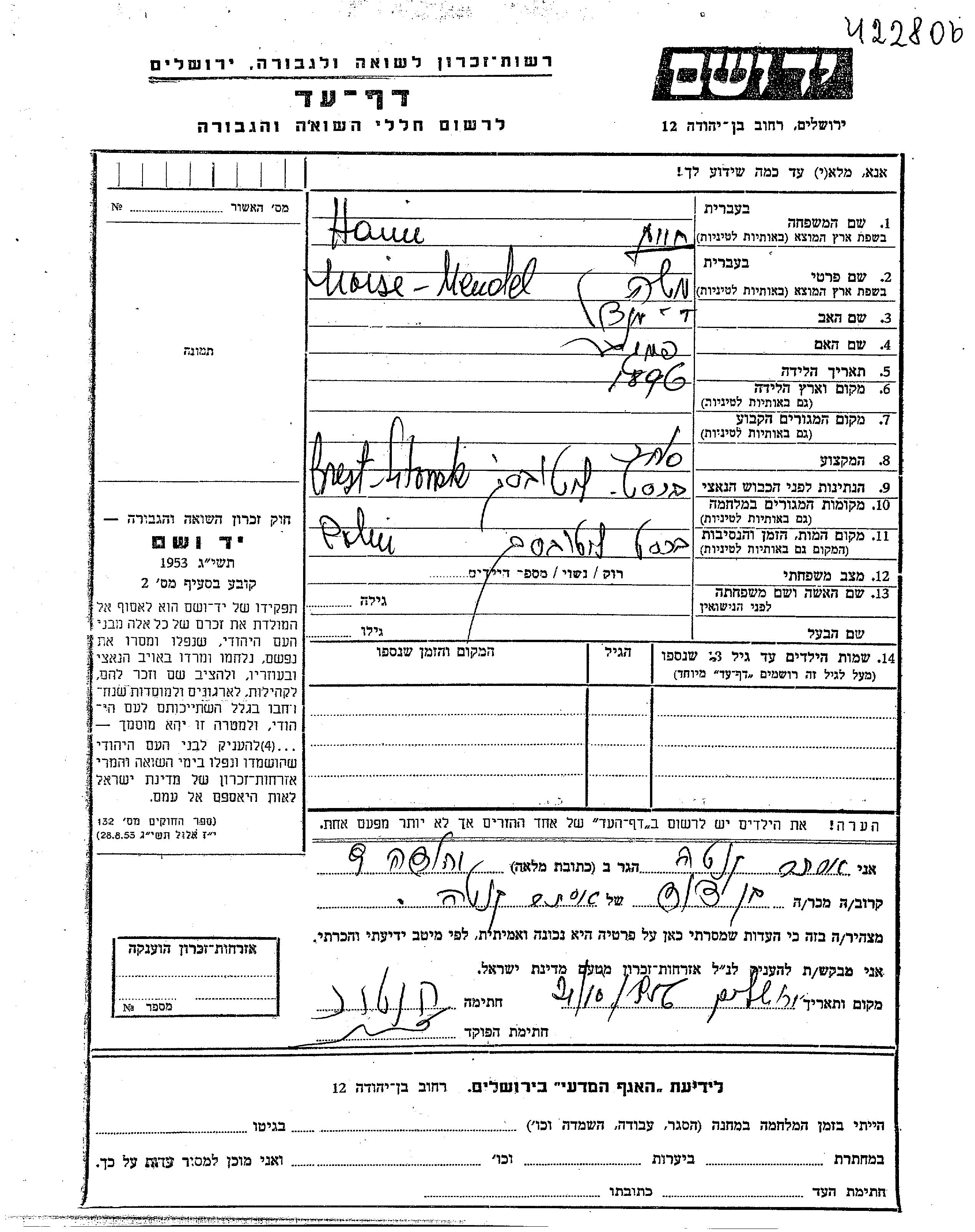 Яд Вашем - Листы свидетельских показаний Мемориального фонда