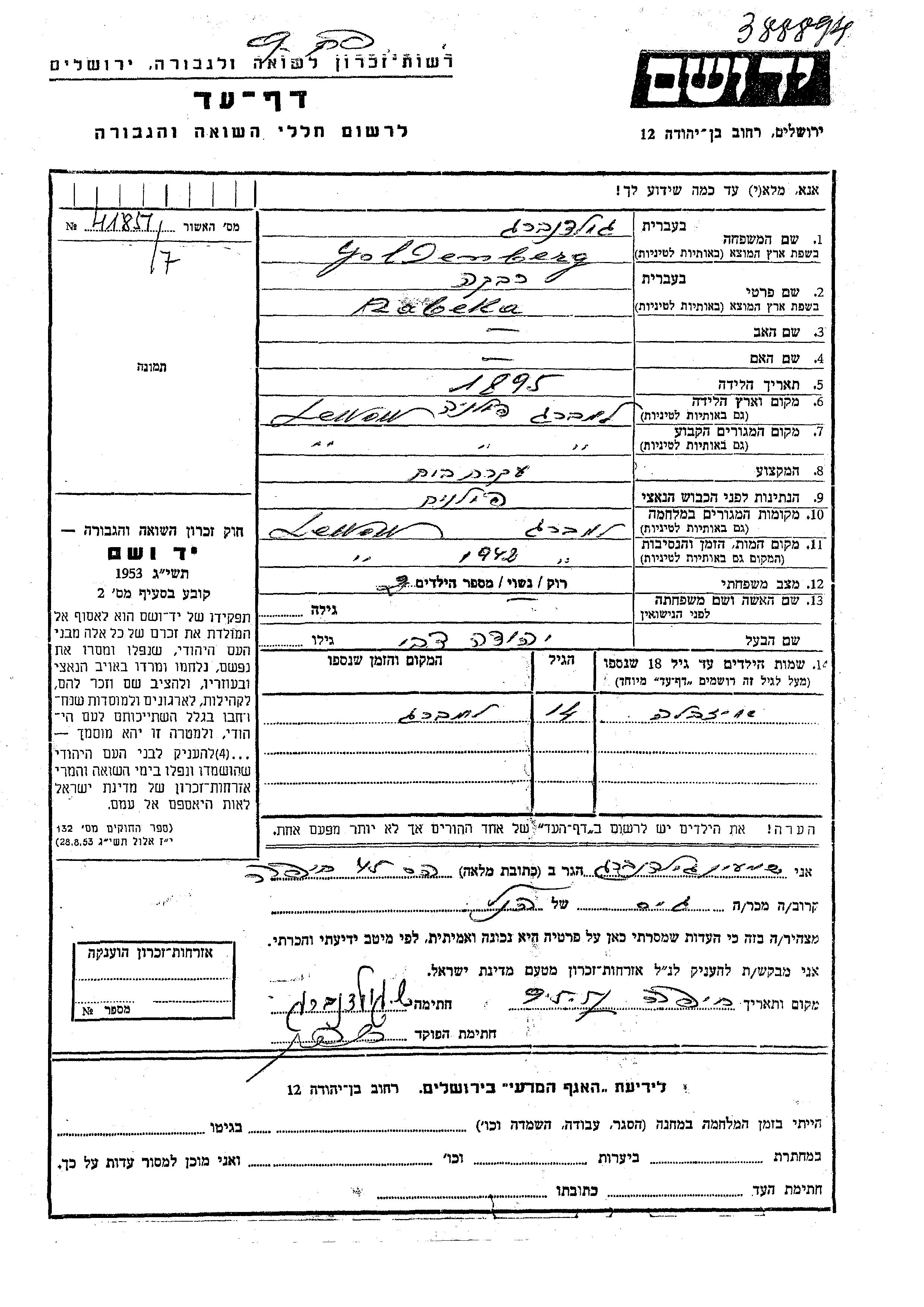 Яд Вашем - Листы свидетельских показаний Мемориального фонда